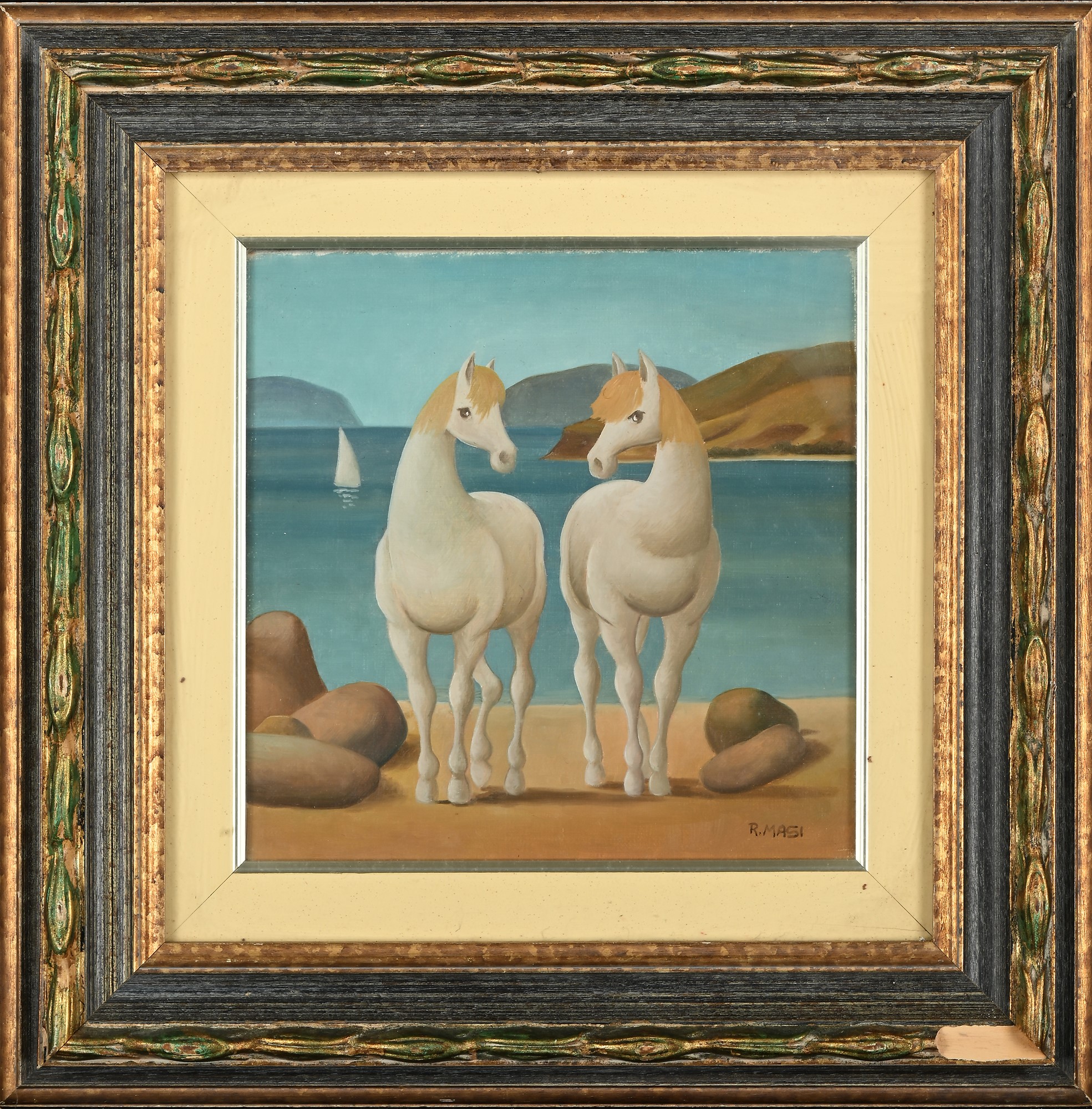 Lot 334 | Roberto Masi (Firenze 1940-Firenze 2011) Due cavalli Olio su tela cm 30x30...
