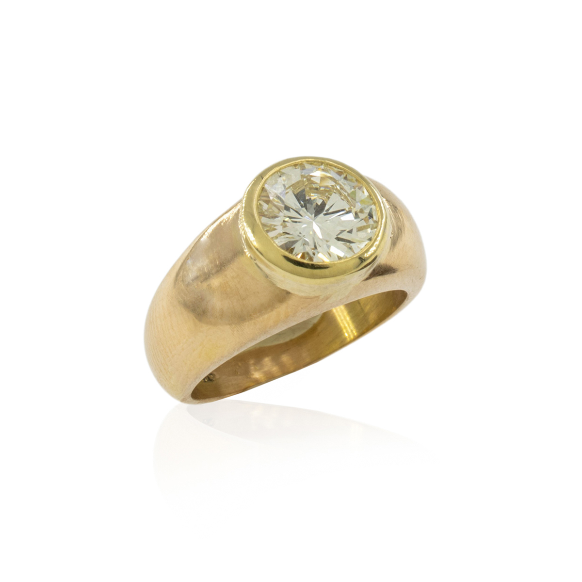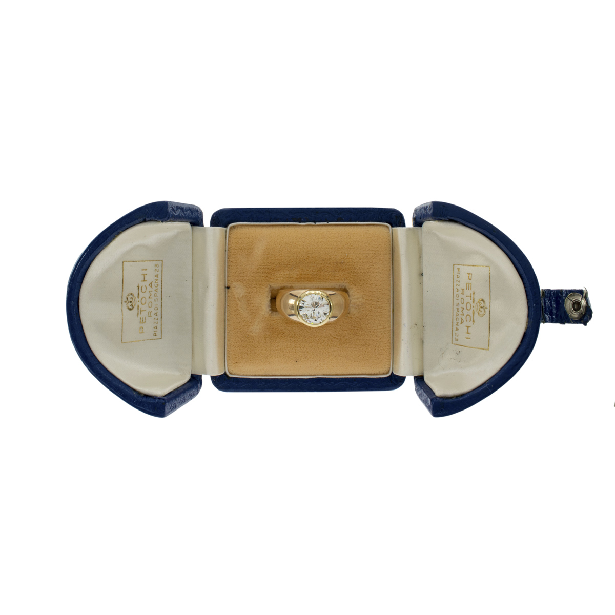 Anello in oro rosa 18kt con diamante ct 1,93 firmato Petochi peso 9 gr. taglio brillante, colore L - purezza VVS1, misura 12, completo di astuccio e certificato gemmologico