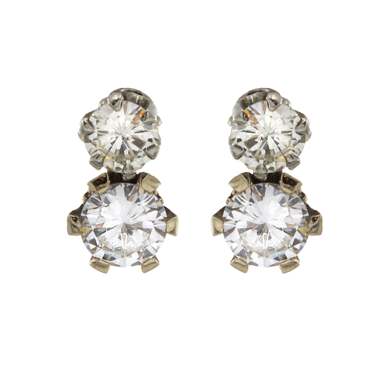 Orecchini a lobo in oro bianco 18kt peso 4 gr. quattro diamanti taglio brillante ct 1,50 circa