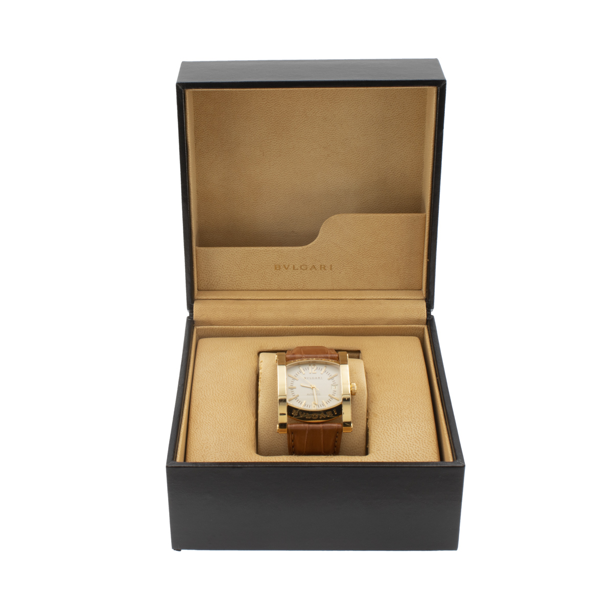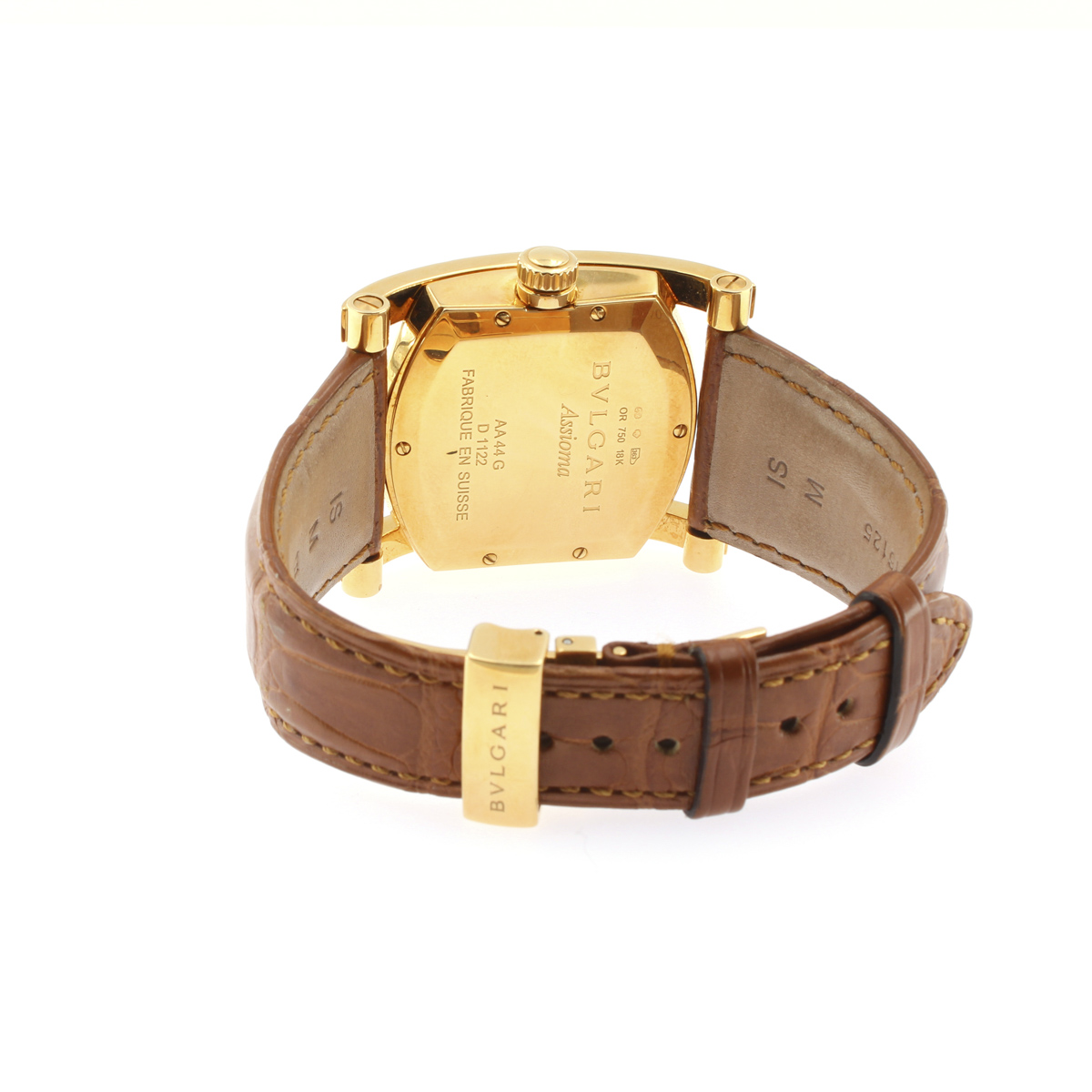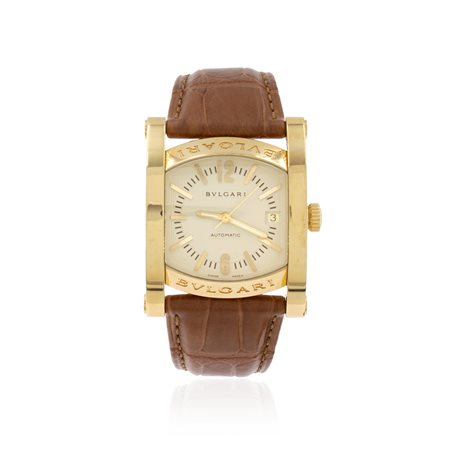 Bulgari Assioma, orologio da polso vintage anni 2000 peso 110 gr. in oro giallo 18kt, ref. AA44G - D1122, cassa 44x34 mm. quadrante bianco con indici e numeri arabi, datario ore 3, vetro zaffiro, movimento meccanico a carica automatica, calibro eta 2890/2, cinturino originale in pelle con chiusura deployante in oro giallo 18kt, cassa, quadrante e movimento firmati, completo di scatola