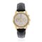 Longines Automatic Conquest, orologio da polso cronografo bicompax vintage peso 85 gr. in oro giallo 18kt, ref. 7949650, cassa tonda 39 mm. quadrante argentato con indici, tre quadranti ausiliari per il cronografo, datario ore 12, movimento meccanico a carica automatica, calibro L650.2, cinturino in pelle con fibbia in metallo dorato, cassa, quadrante e movimento firmati,