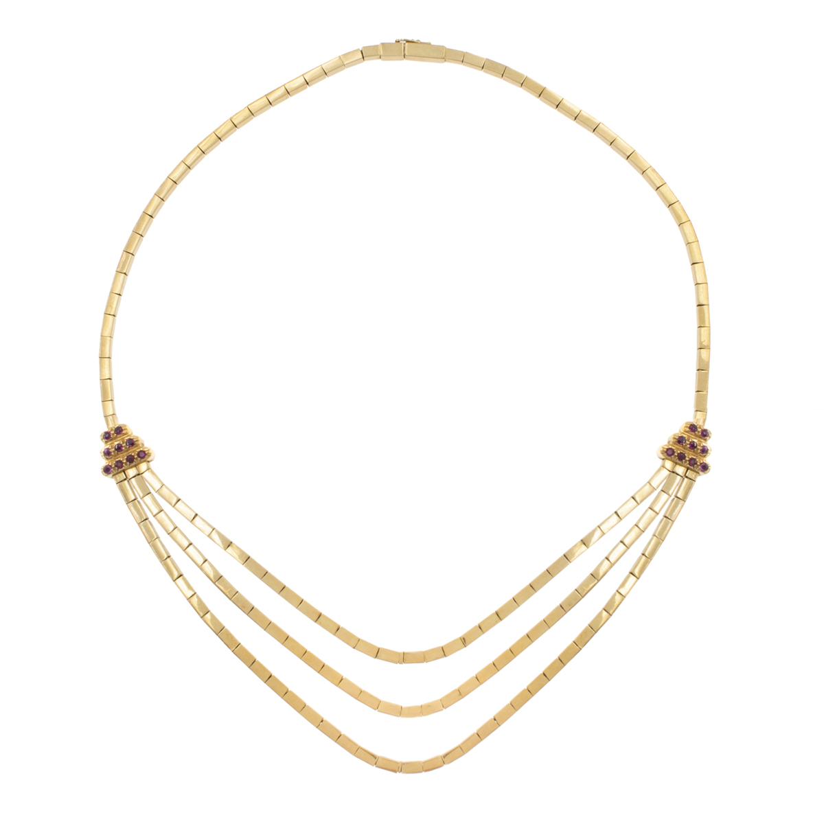 Collana in oro giallo 18kt e rubini anni 40/50 peso 58 gr.