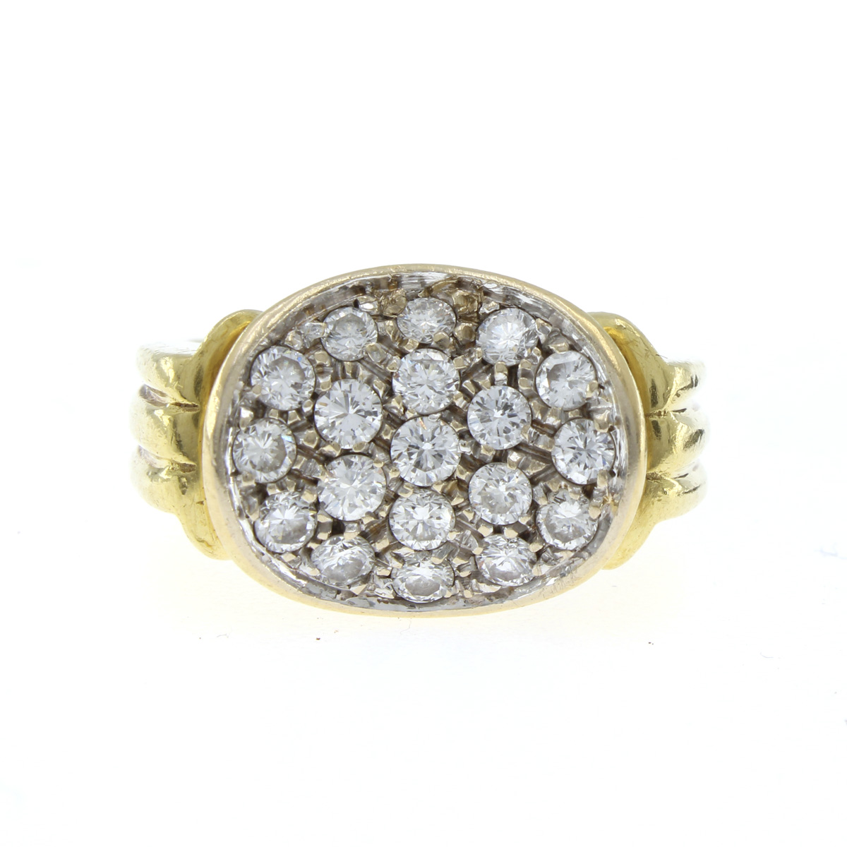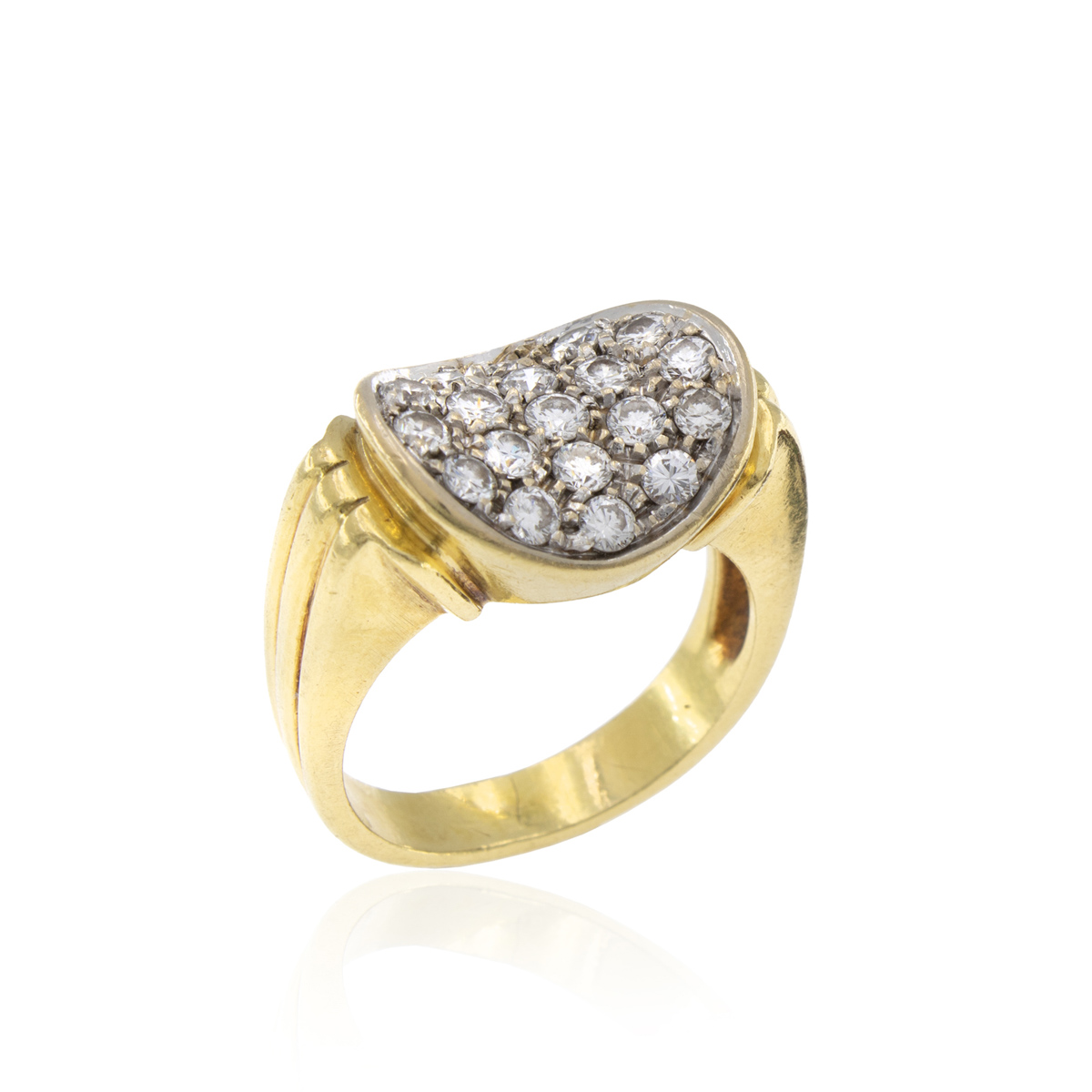 Anello in oro giallo e bianco 18kt e diamanti peso 11 gr. taglio brillante ct 1,20 circa, misura 15