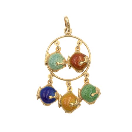 Pendente pesci in oro giallo 18kt e smalto policromo peso 8 gr.
