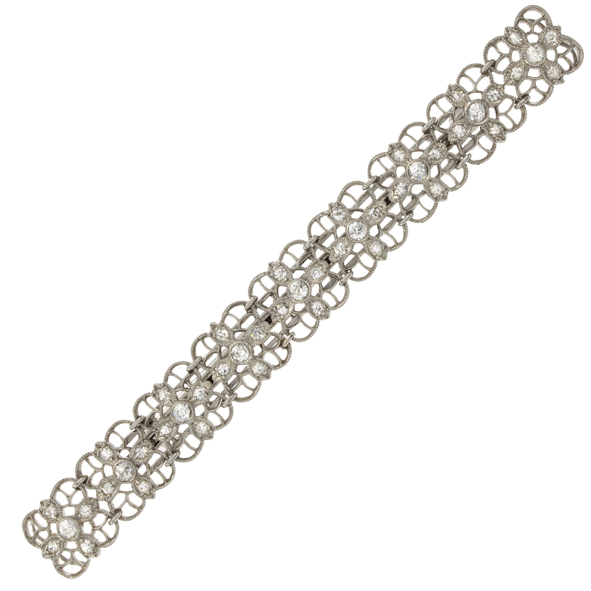 Antica spilla a motivo floreale in platino e diamanti anni 30/40 peso 15 gr.
