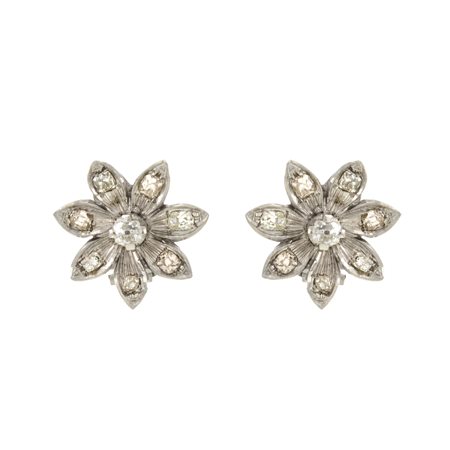 Orecchini a lobo in platino e rose coroné anni 30/40 peso 8 gr.