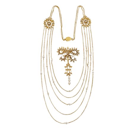 Collana e spilla in oro giallo 18kt primi '900 peso 14 gr.