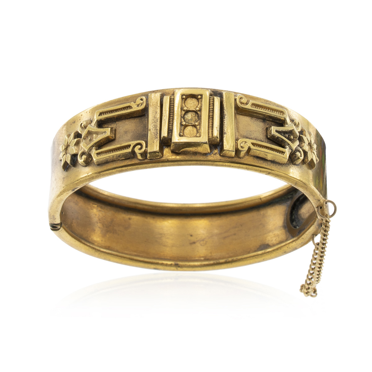 Antico bracciale a manetta in oro giallo 9 kt primi 900 peso 21 gr.