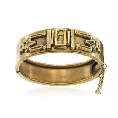Antico bracciale a manetta in oro giallo 9 kt primi 900 peso 21 gr. diametro 6 cm. - altezza 1,6 cm.