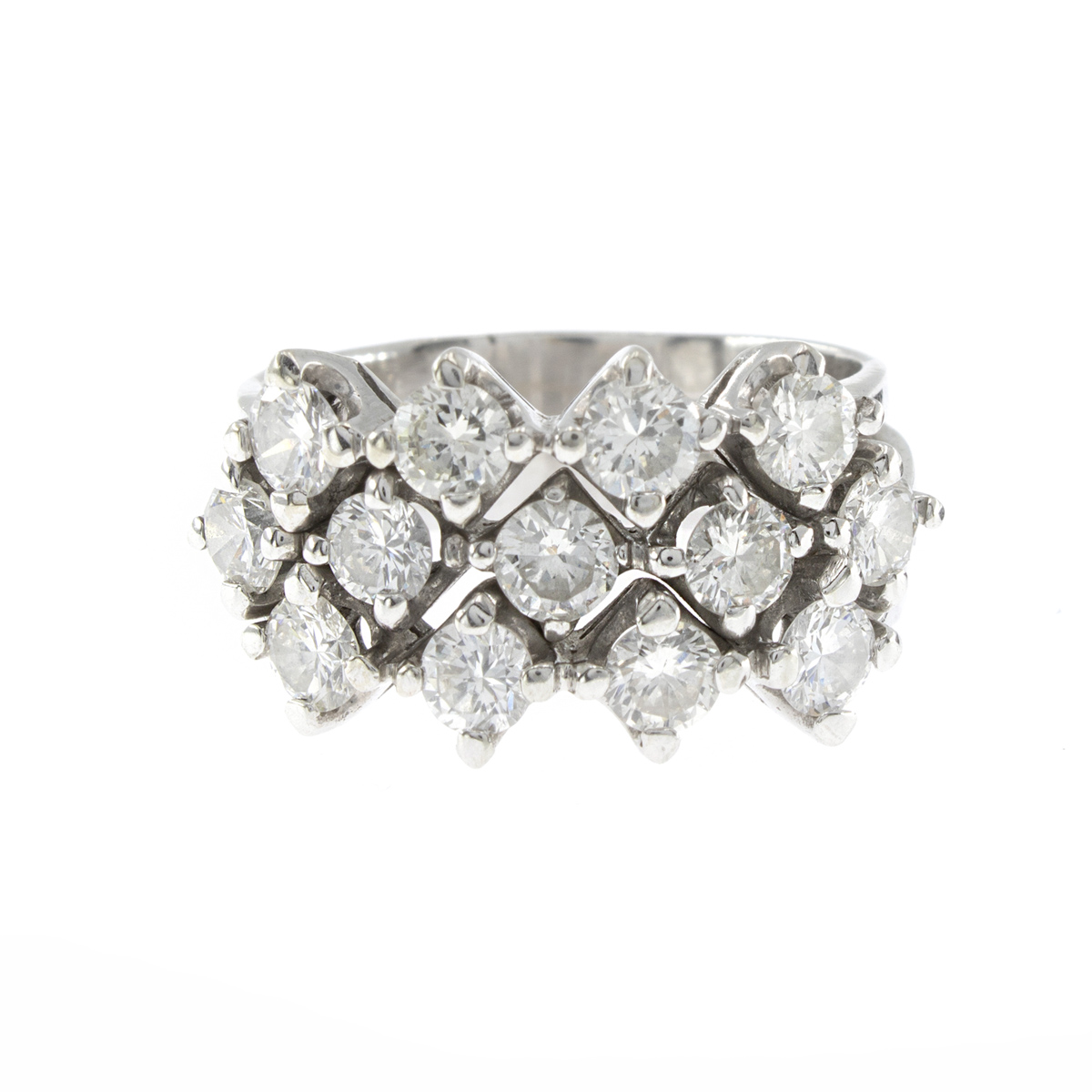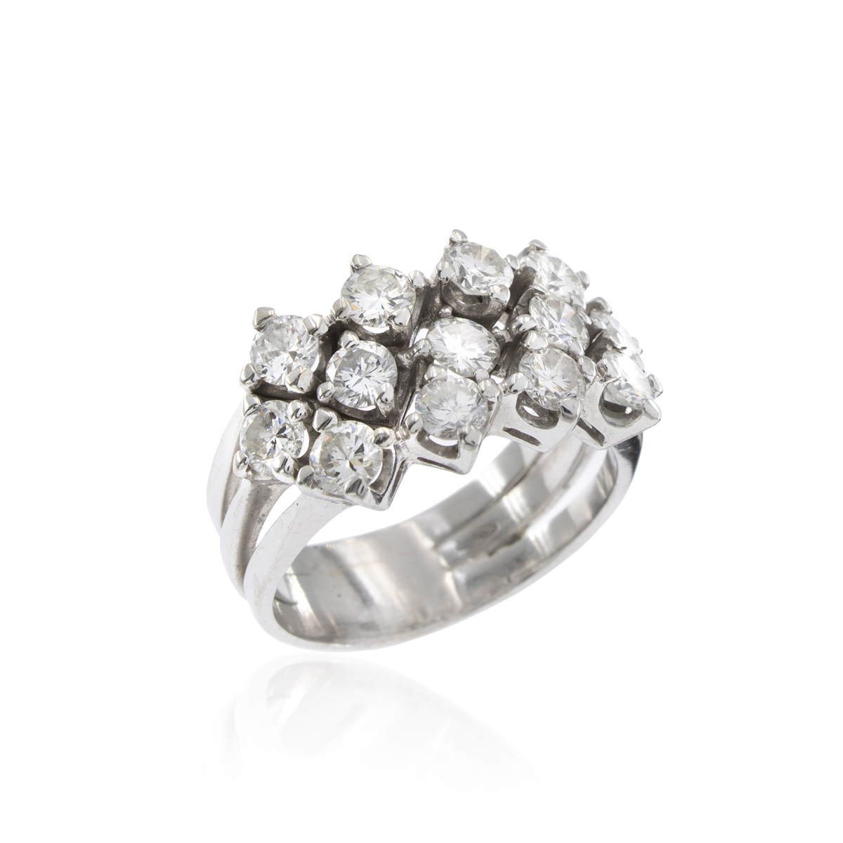 Anello in oro bianco 18kt con tredici diamanti peso 7 gr. taglio brillante ct 1,30 circa, misura 15,5