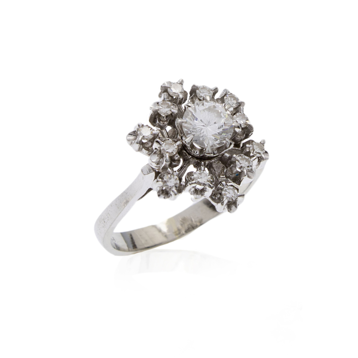 Anello in oro bianco 18kt e diamanti peso 5 gr. taglio brillante ct 0,40 circa, misura 10