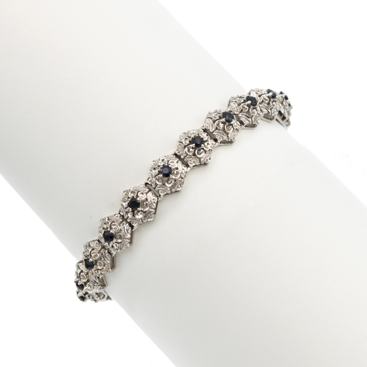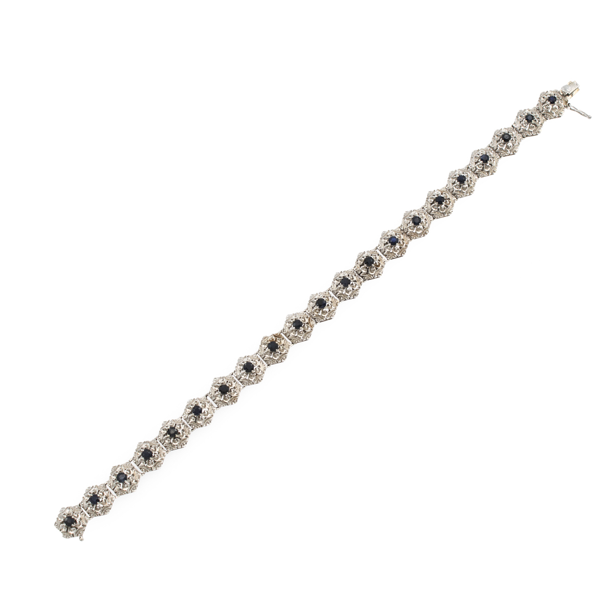 Bracciale in oro bianco 18kt e zaffiri tondi peso 16 gr. lunghezza 18 cm.