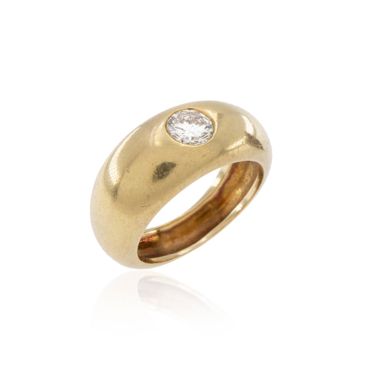 Anello in oro giallo 18kt con diamante anni 40/50 peso 9 gr. taglio brillante ct 0,40 circa, misura 11