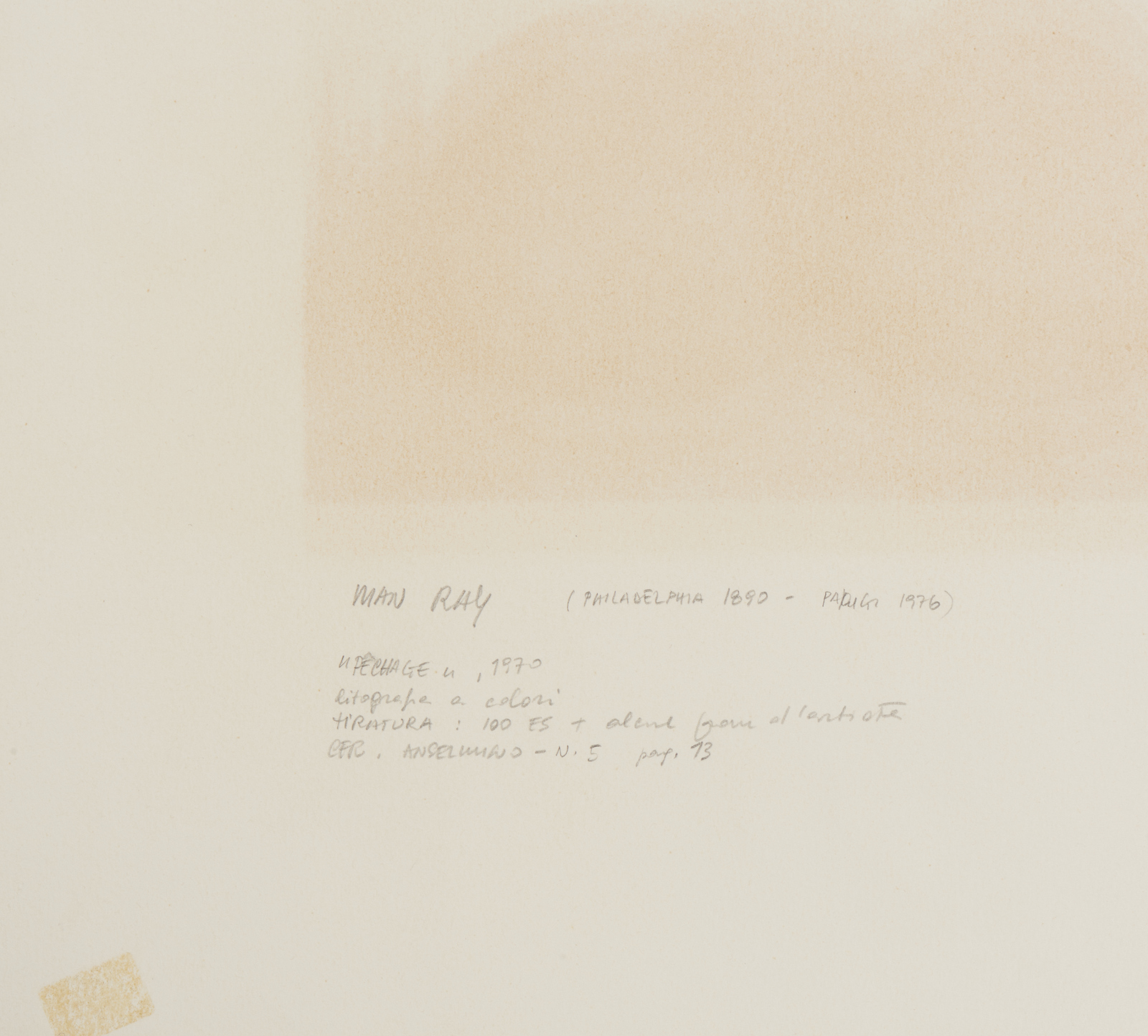 MAN RAY (1890 - 1976) Pechage. 1970. Litografia. Cm 50,00 x 66,00. E.A Tiratura e monogramma in basso a matita. Carta Arches. Edizione totale: 120 esemplari. Pubblicazione: Anselmino n.5. Dimensione lastra: 29,5x45 cm.