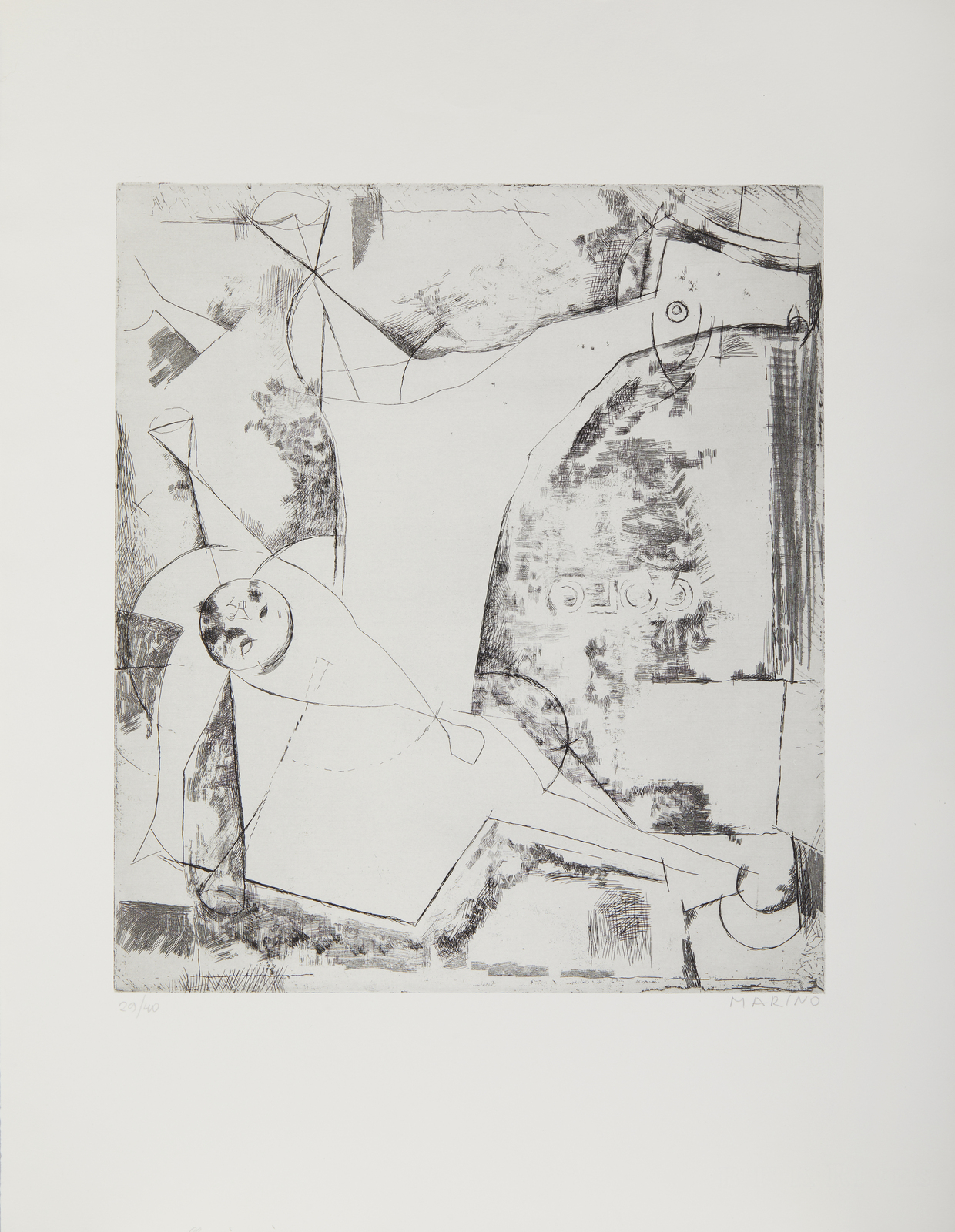 MARINI MARINO (1901 - 1980) Allucinazione (Imagines, Tavola II). 1970. Acquaforte. Cm 49,50 x 65,00. 29/90. Tiratura, firma e titolo in basso a matita. Dimensioni lastra: 42x36 cm. Editore: Graphis Arte, Livorno e Toninelli Arte Moderna, Milano, 1973. Stampatore: Geloch Gjokai & Moussa Abdajen, Roma. Edizione totale: 90 esemplari numerati da 1 a 90; 10 esemplari numerati da I a X + 10 prove d'artista contrassegnate E.A. Pubblicazione: Catalogo ragionato dell'Opera grafica (Incisioni e Litografie) 1919-1980, a cura di Giorgio e Guido Guastalla, 1990, Edizioni Graphis Arte, Livorno, tav. A107, p. 211.