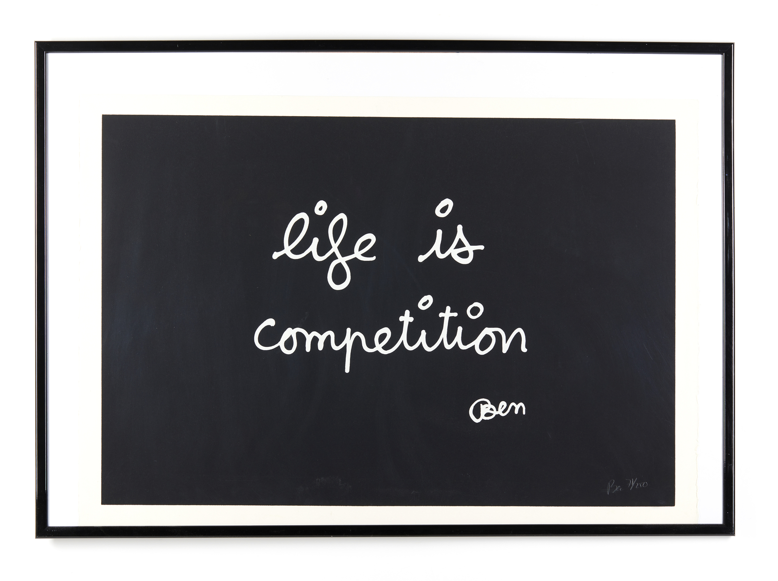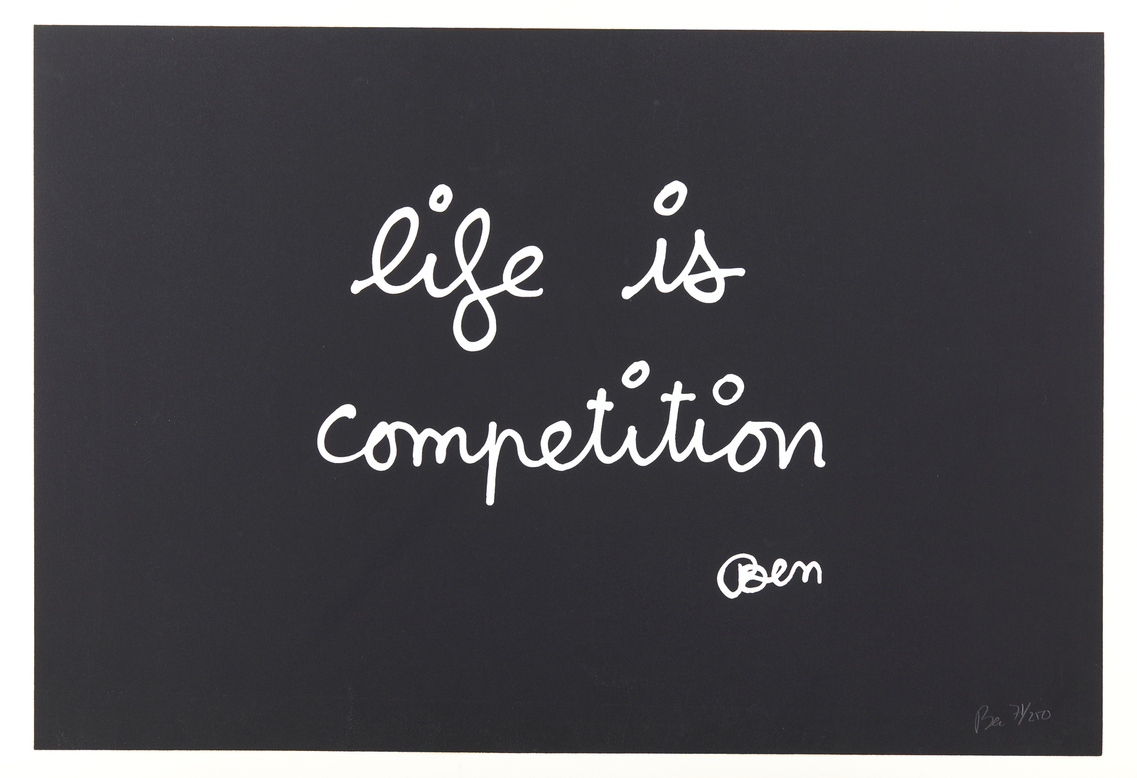 VAUTIER BEN (n. 1935) Life is competition. 1992. Serigrafia. Cm 90,00 x 63,00. 71/250. Tiratura e firma in basso a destra. Editore: Olympic Centennial. Stampatore: BO 15 Barcellona. Edizione totale: 250 esemplari. Cornice presente