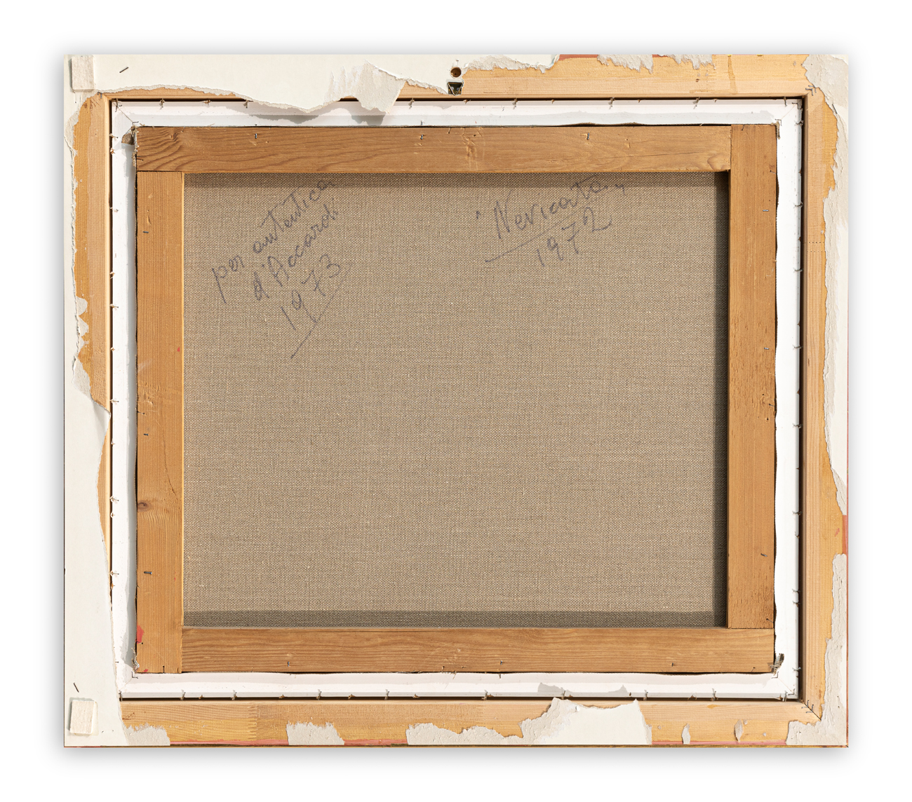 Firma, titolo, datazione e dichiarazione di autenticità dell'Artista al retro