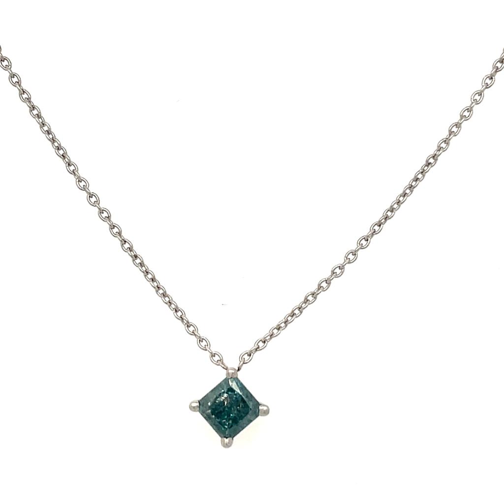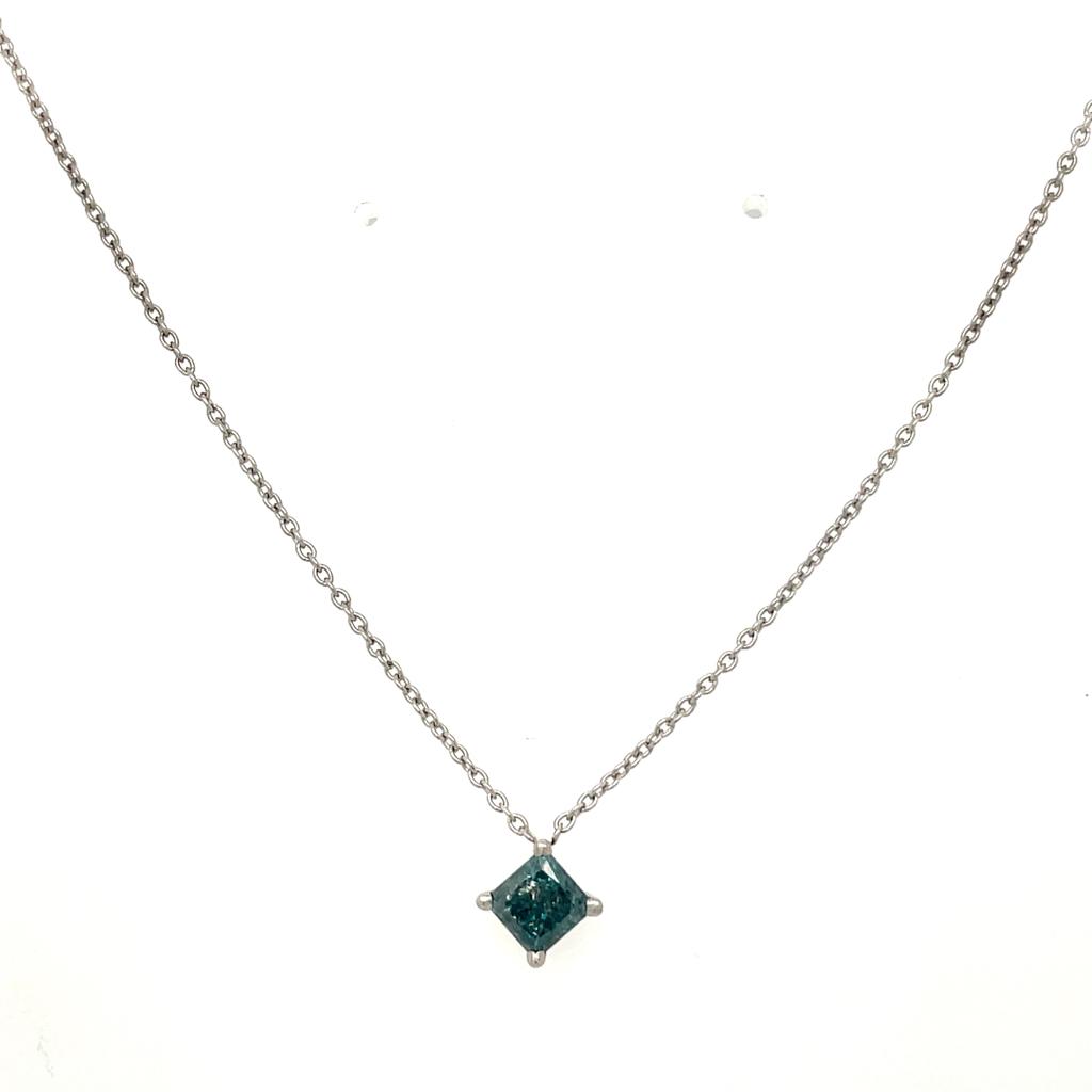 GIROCOLLO IN ORO BIANCO 14K 1.95 GR CON DIAMANTE DA 0.65 CARATI COLORE ESALTATO BLU INTENSO PUREZZA I3 - CERTIFICATO GEMMOLOGICO MAROZ DIAMONDS LTD MEMBRO ISRAEL DIAMOND EXCHANGE - PND21102
