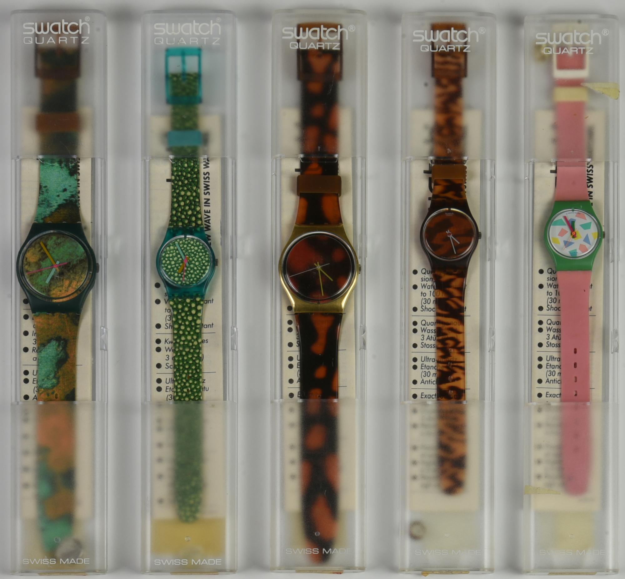 LOTTO DI CINQUE SWATCH, 1988 composto da: -SWATCH MAYBRIDGE, mod. OLD BOND,...