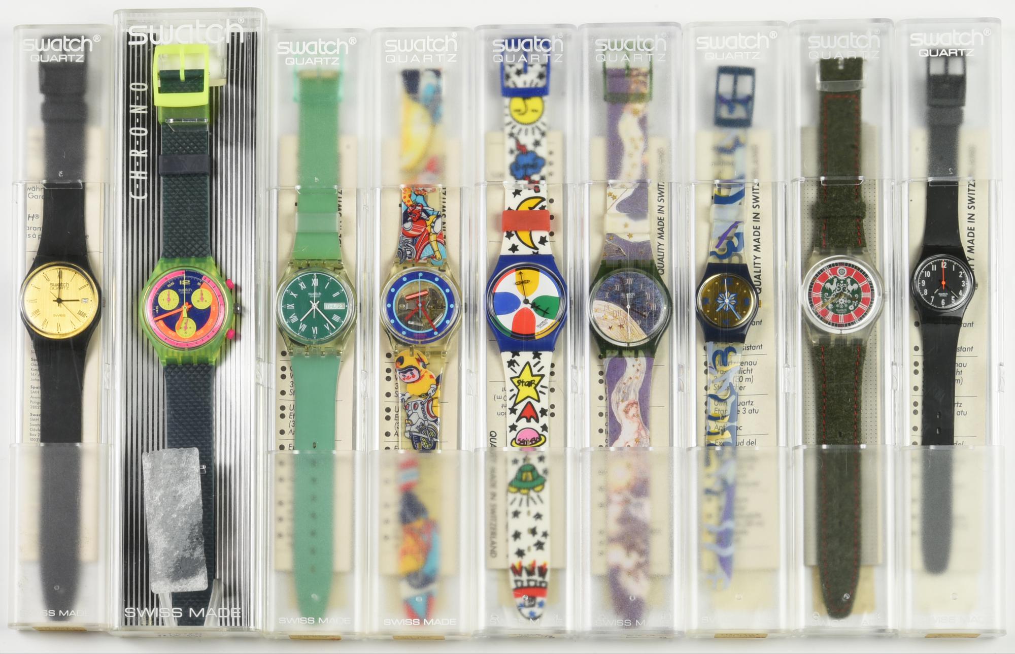 LOTTO DI NOVE SWATCH, 1992-1993 composto da: -SWATCH cod. GB402, 1983 -SWATCH...