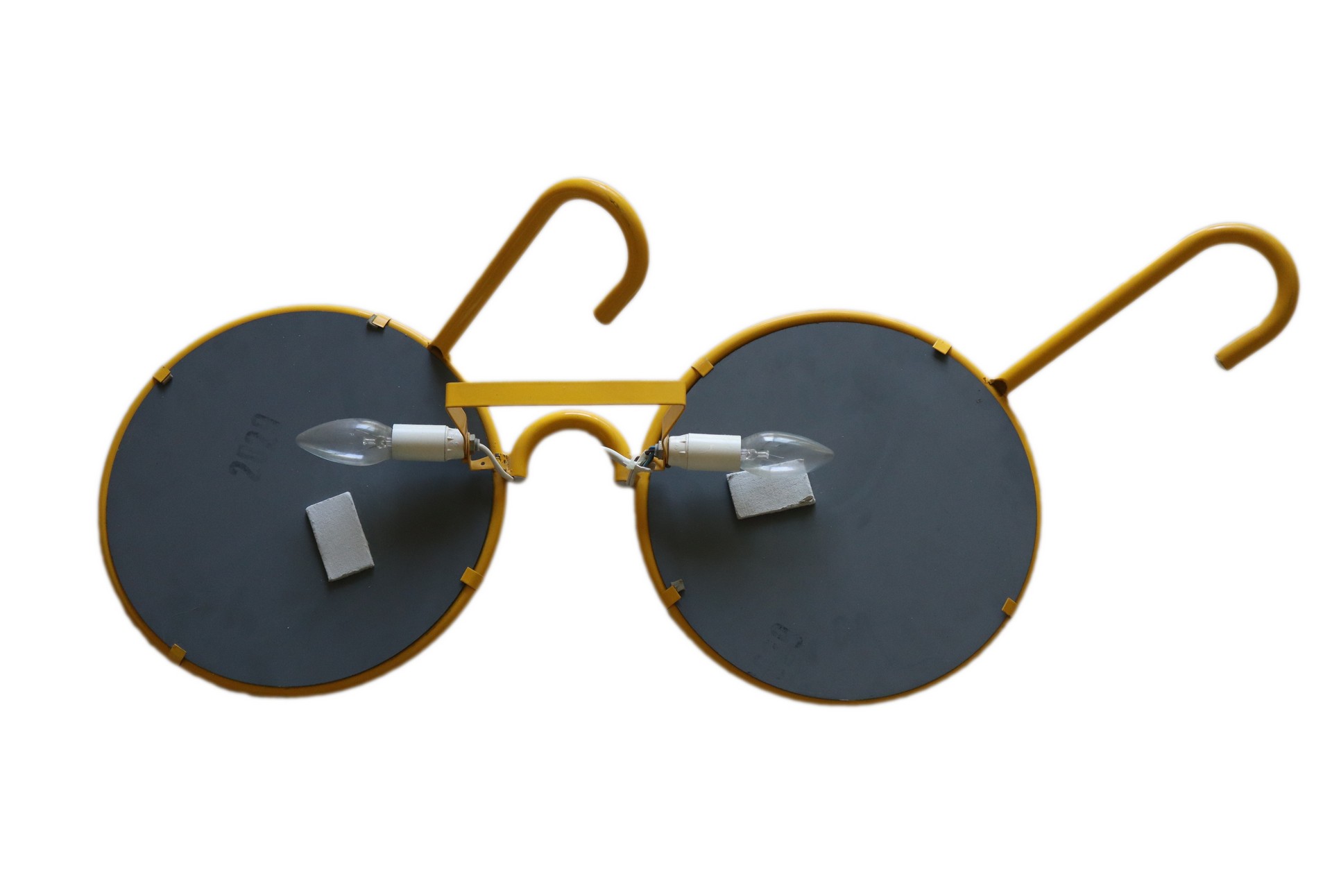Lampada a parete a guisa di occhiale, produzione italiana nello stile di Lapo Binazzi, 80s