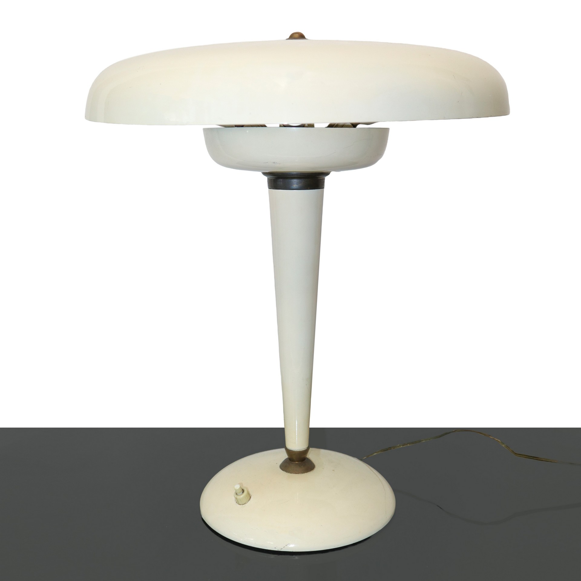 Lampada da tavolo ministeriale in latta laccata beige H cm 44