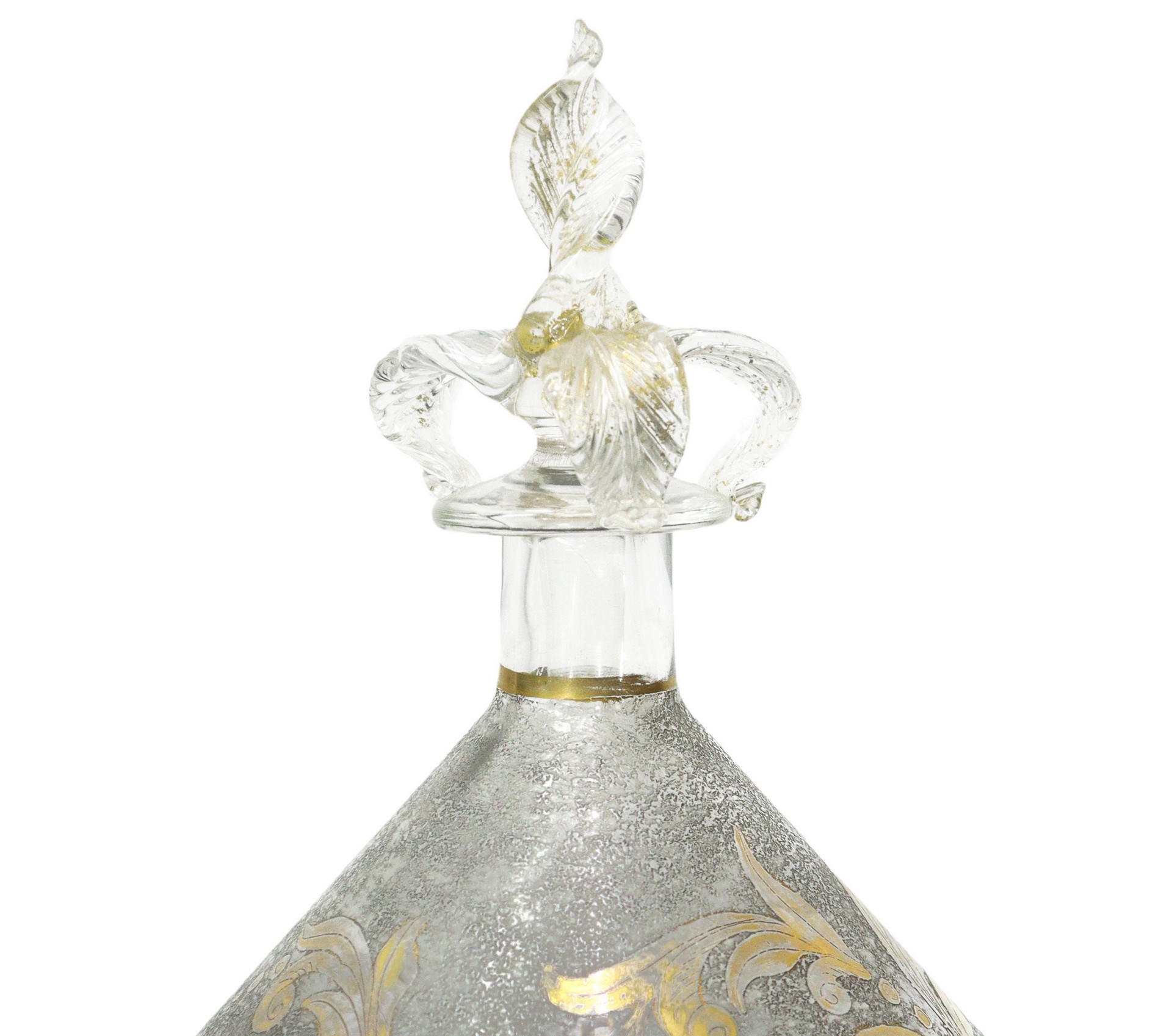 Bottiglia in vetro soffiato di Murano con decori in oro
