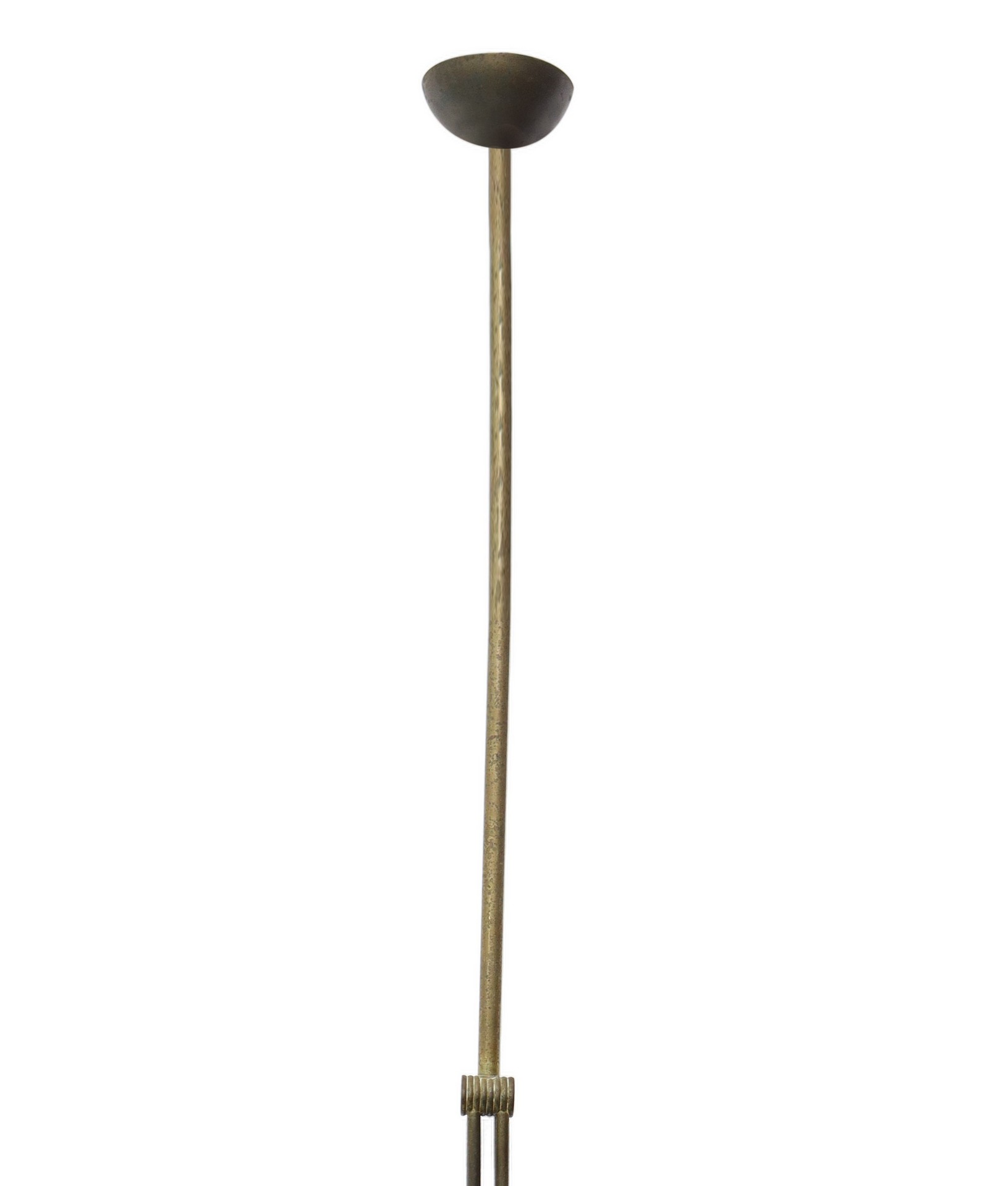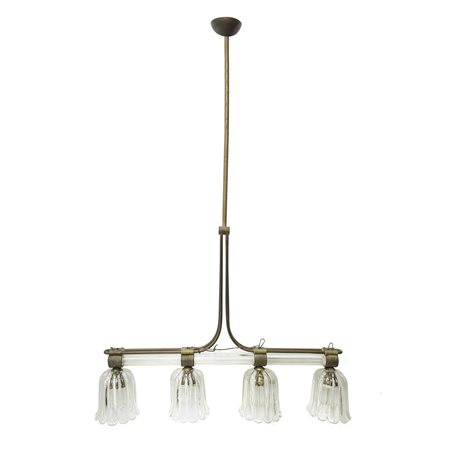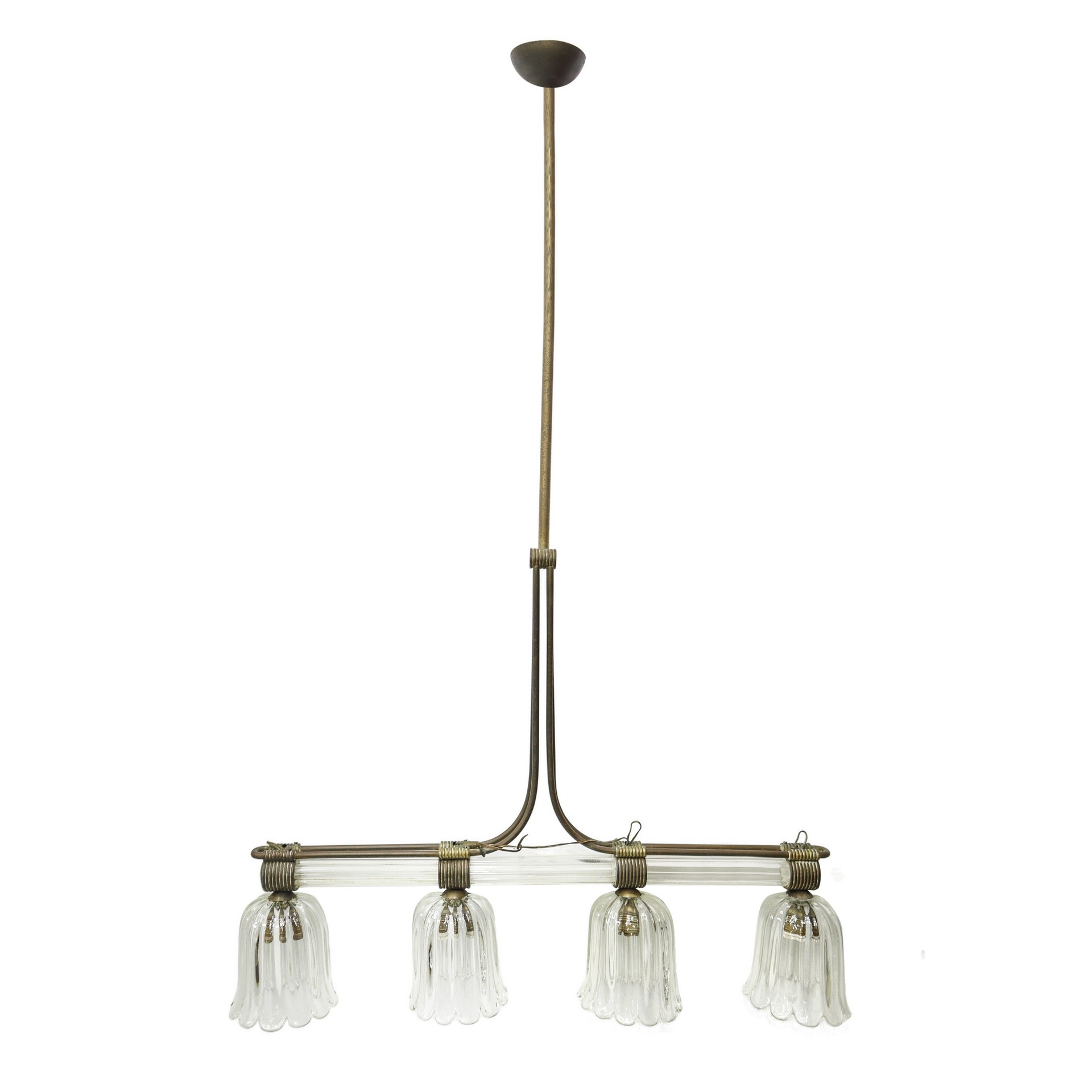 Lampadario deco' a 4 campane in vetro pesante, 1920 H cm 138x90