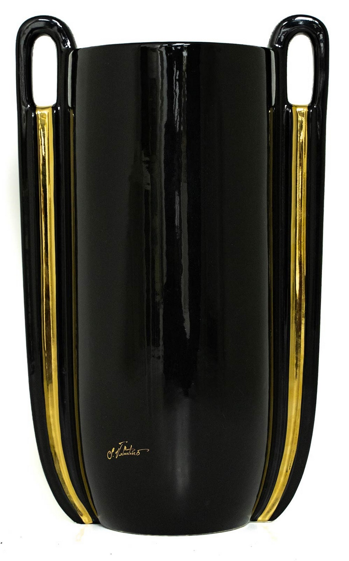 Vaso nero e dorato, 20° secolo