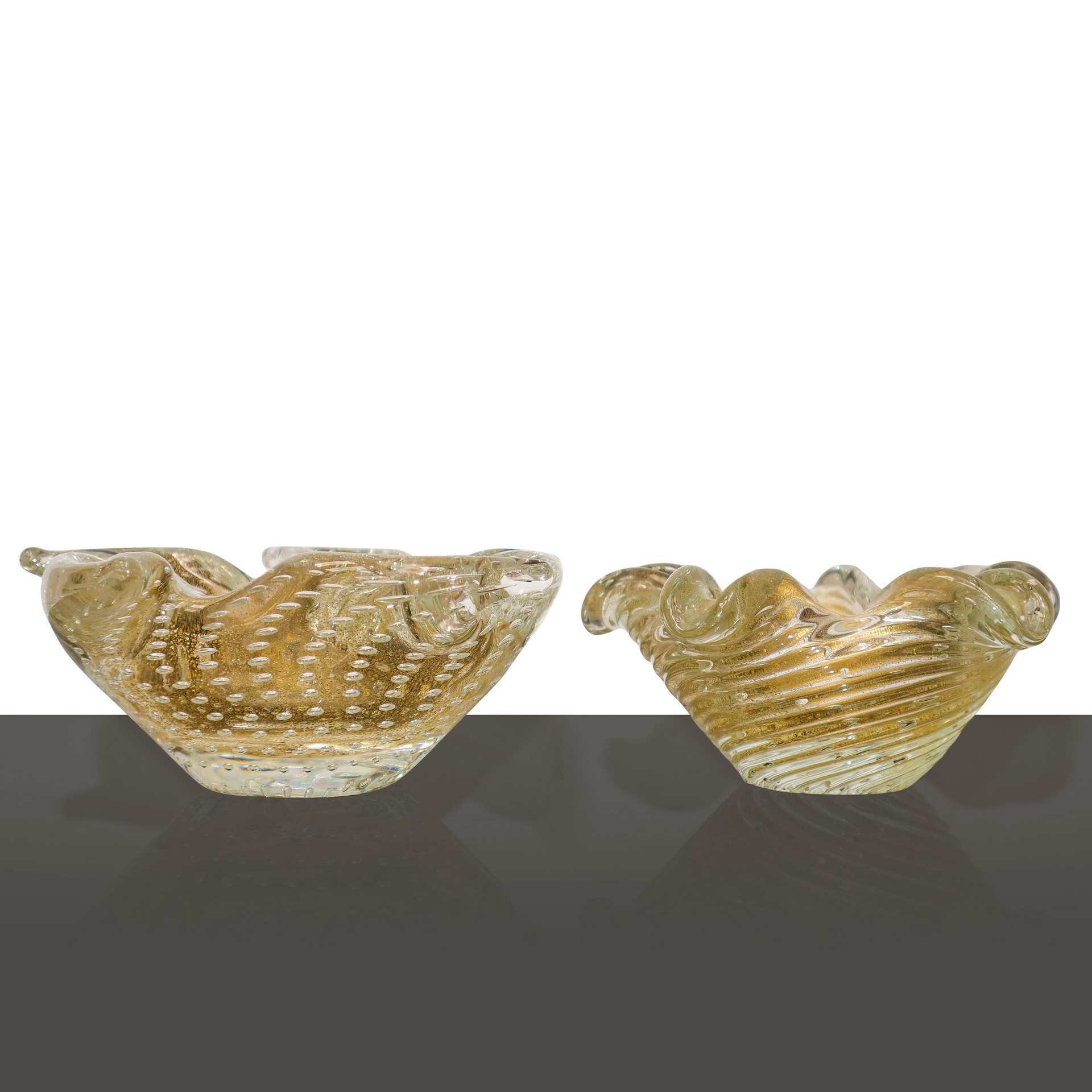 Barovier e Toso - Coppia di stelle in vetro di Murano pulegoso con iridescenze nei toni dell'oro