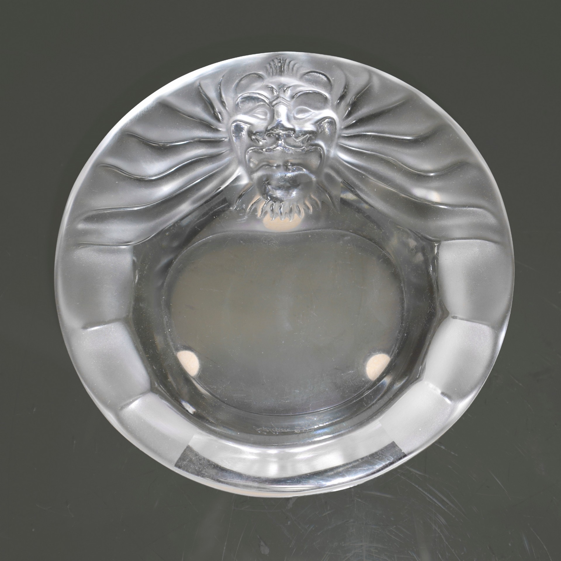 Lalique Paris (1888) - Posacenere con decoro di leone H cm 6 Diametro 15