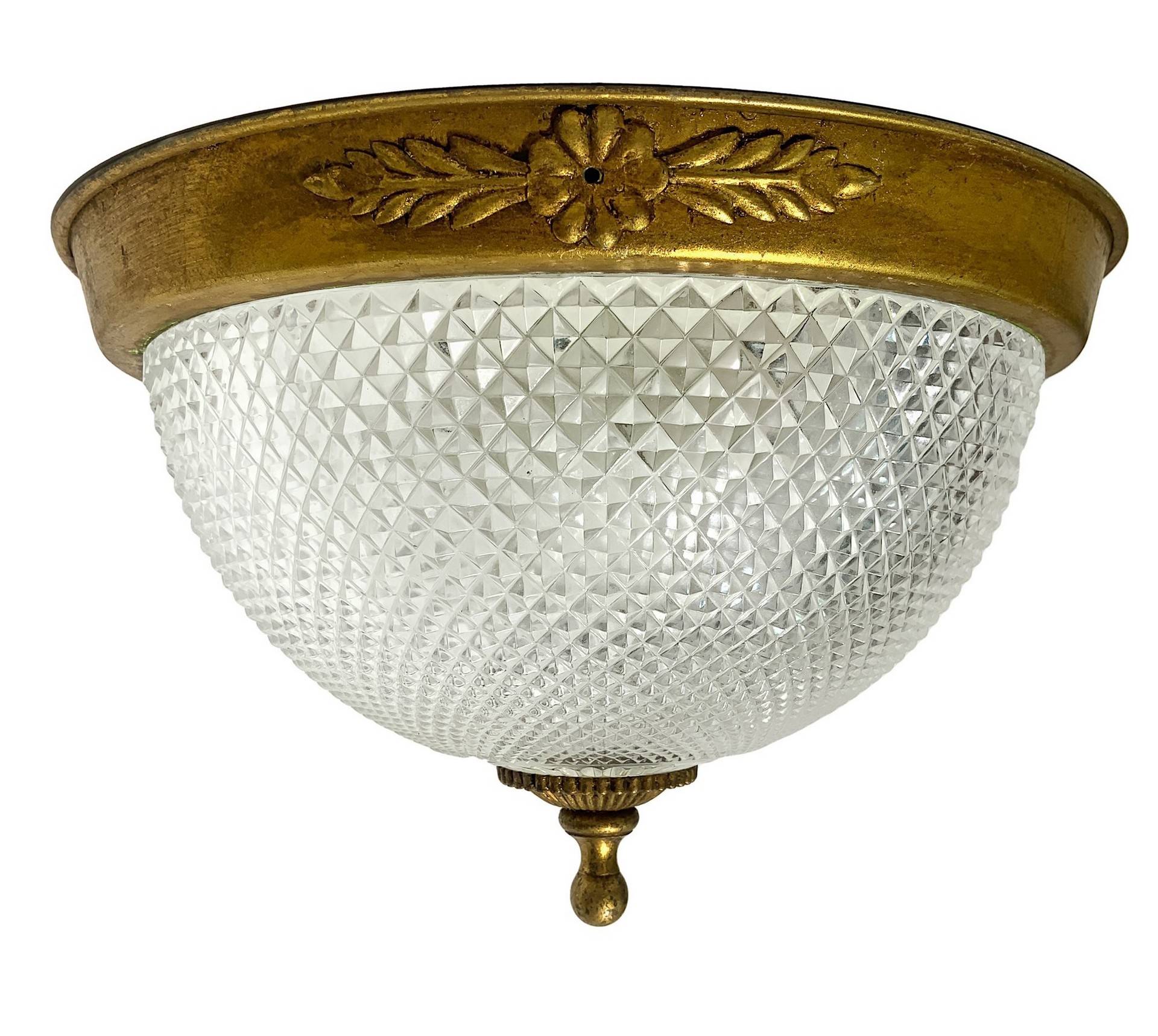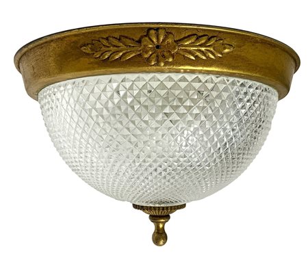 Plafoniera in vetro smerigliato e base in metallo dorato, 20° secolo