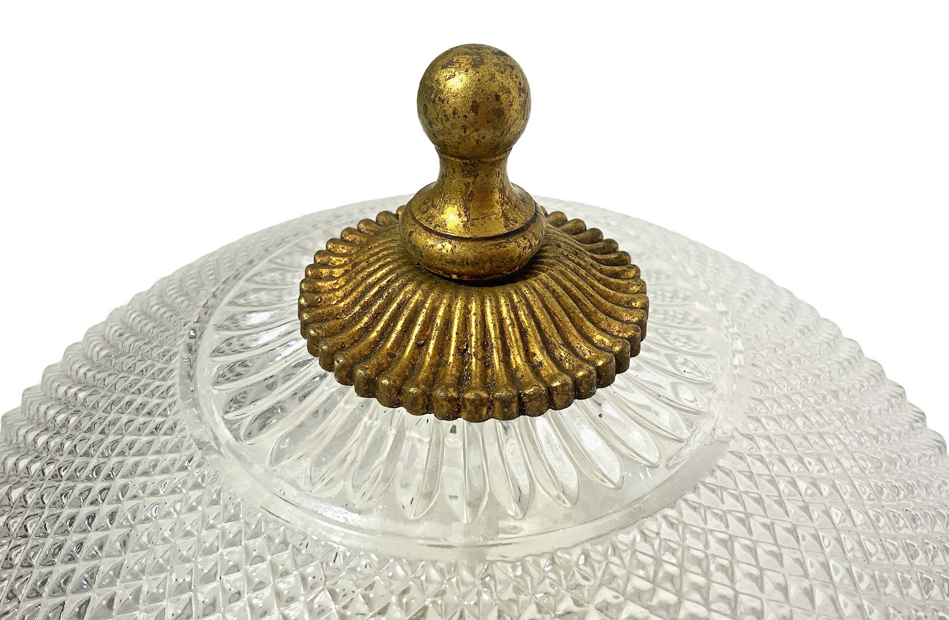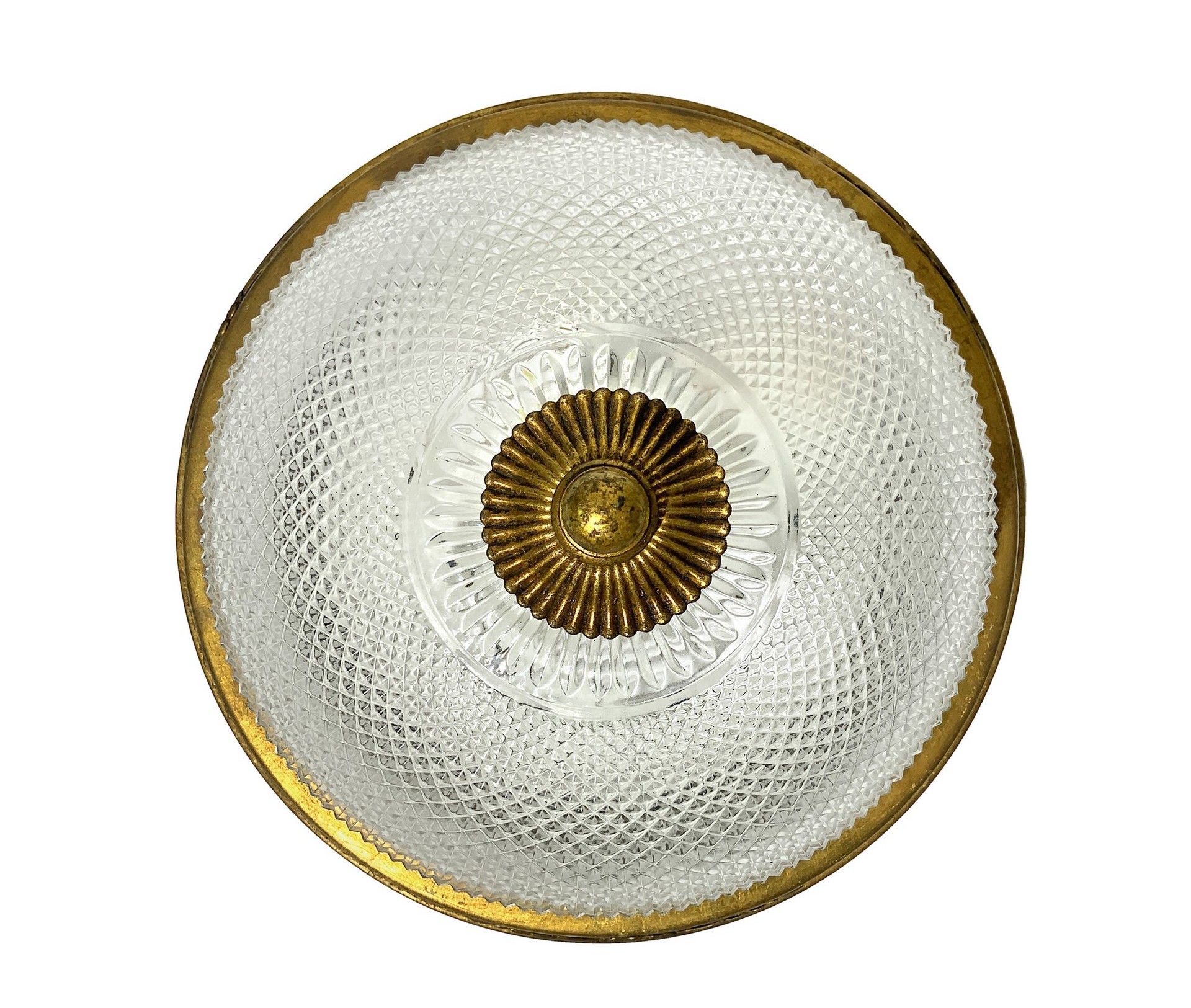 Plafoniera in vetro smerigliato e base in metallo dorato, 20° secolo H 20x30 cm