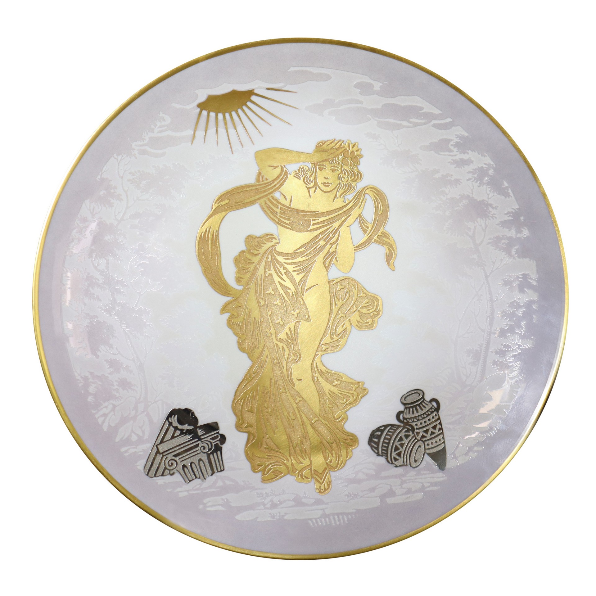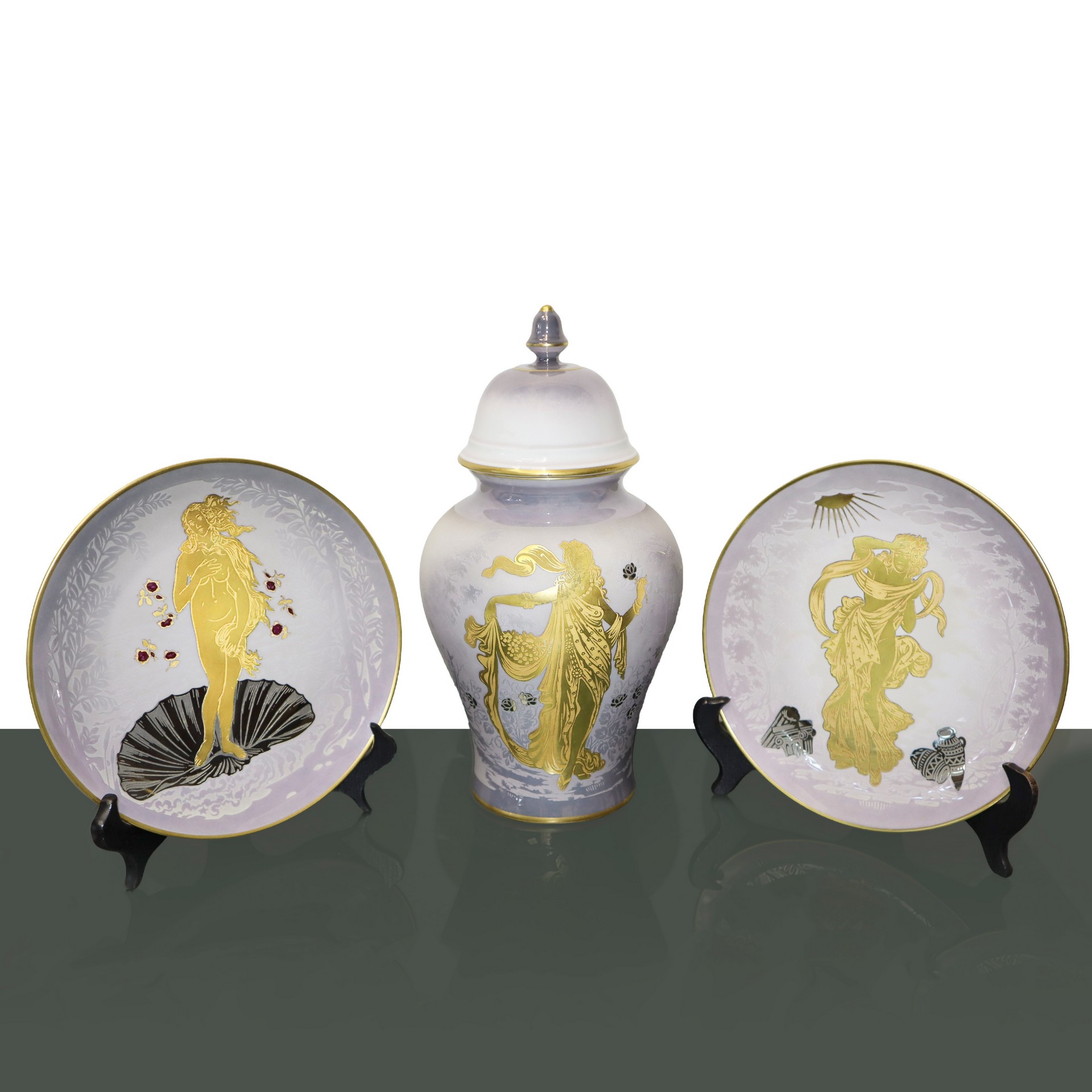 Richard Ginori - Trittico in porcellana composto da potiche e due piatti. Incisioni in oro zecchino eseguita a manoIncisioni in oro zecchino eseguita a mano