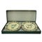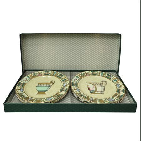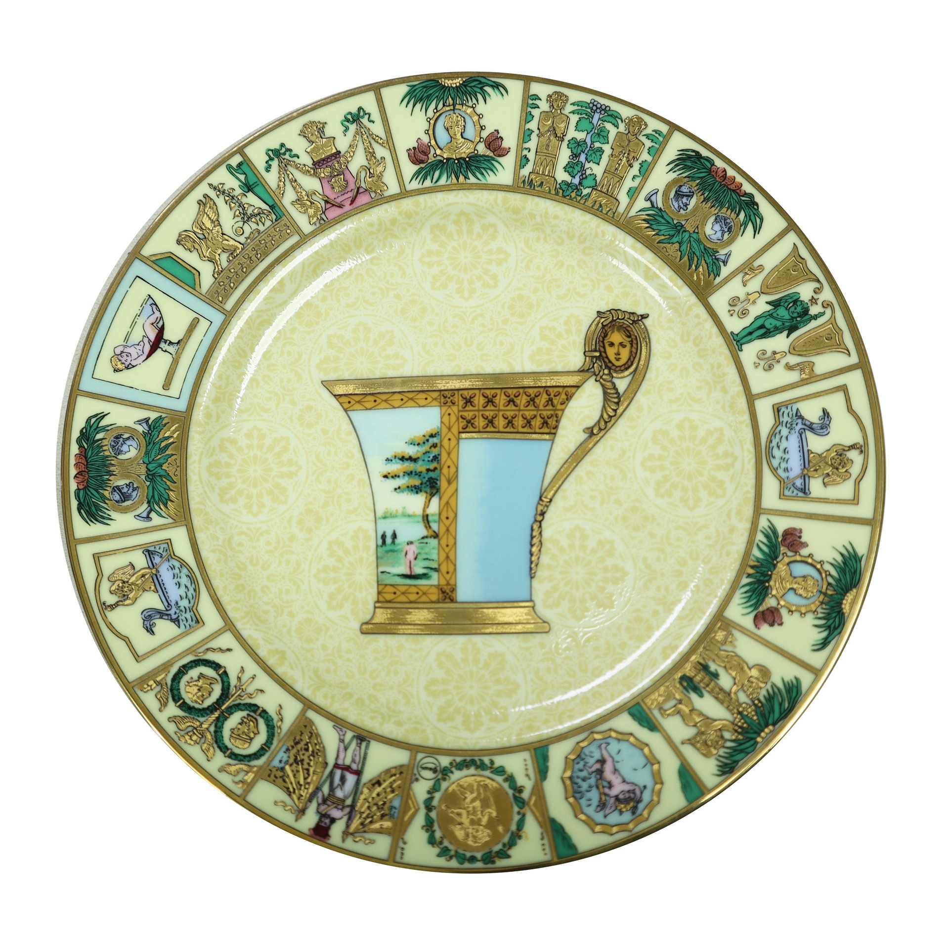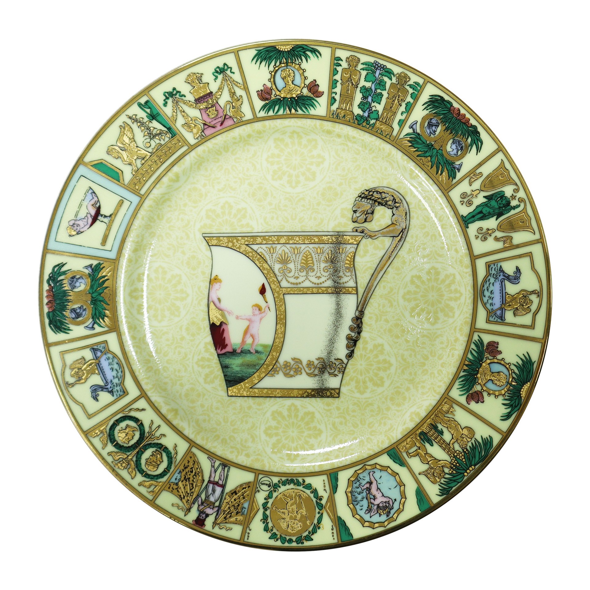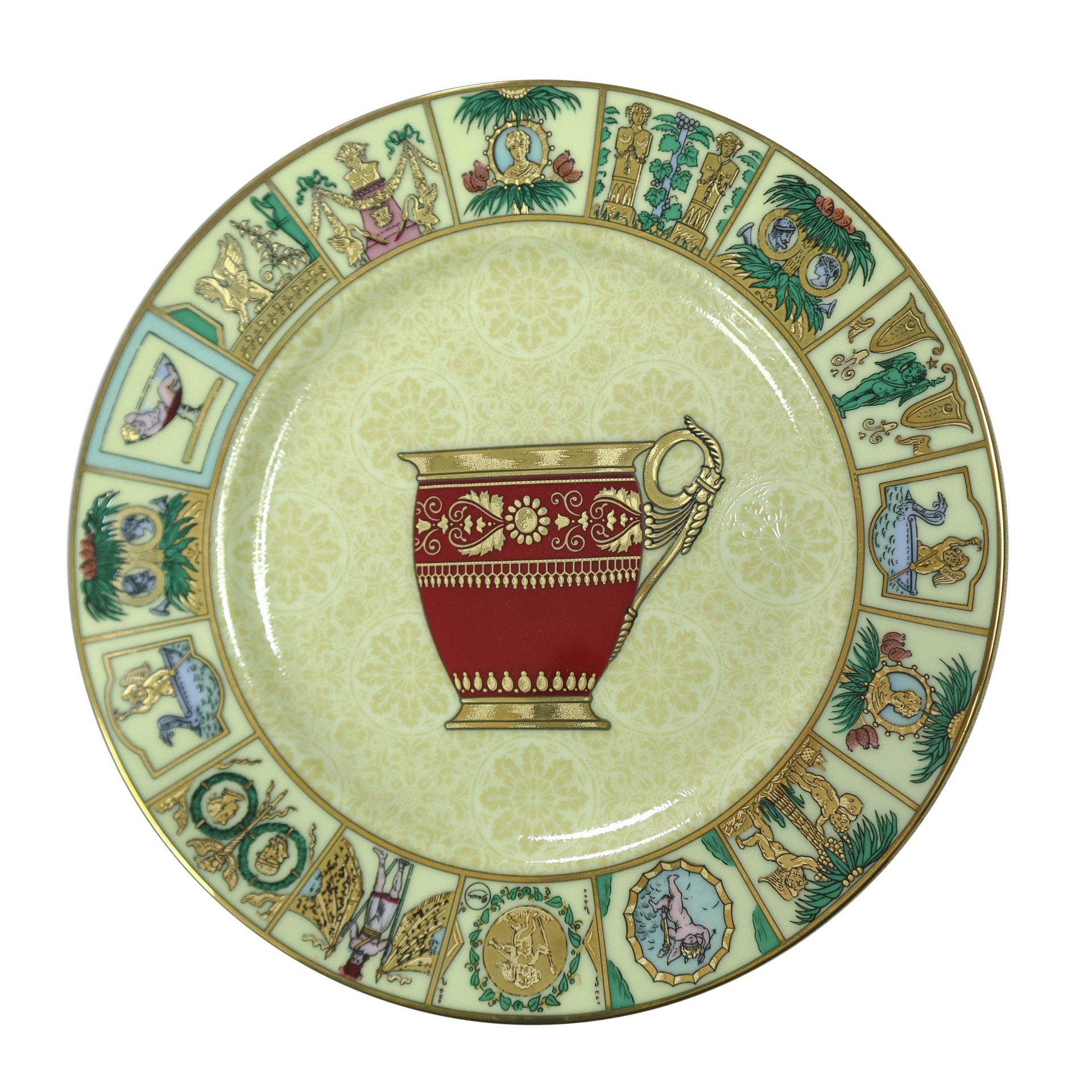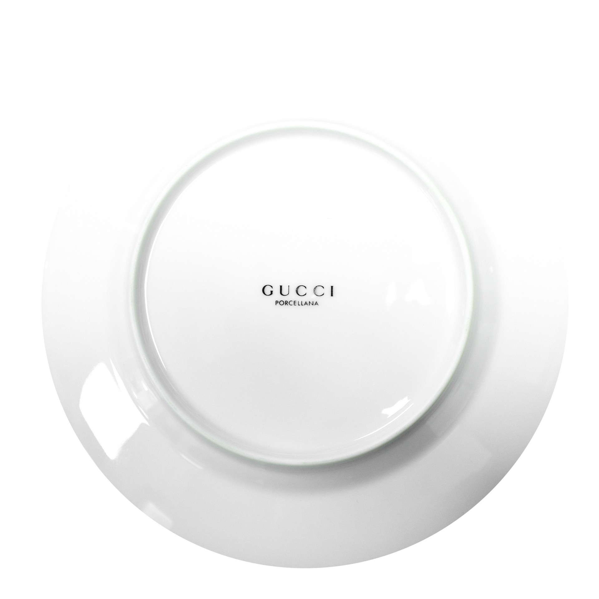 Gucci - Set di quattro piatti da parete in porcellana con decorazione multicolore e dorata, 80s Scatola originale e divisore firmato in pannoScatola originale e divisore firmato in panno