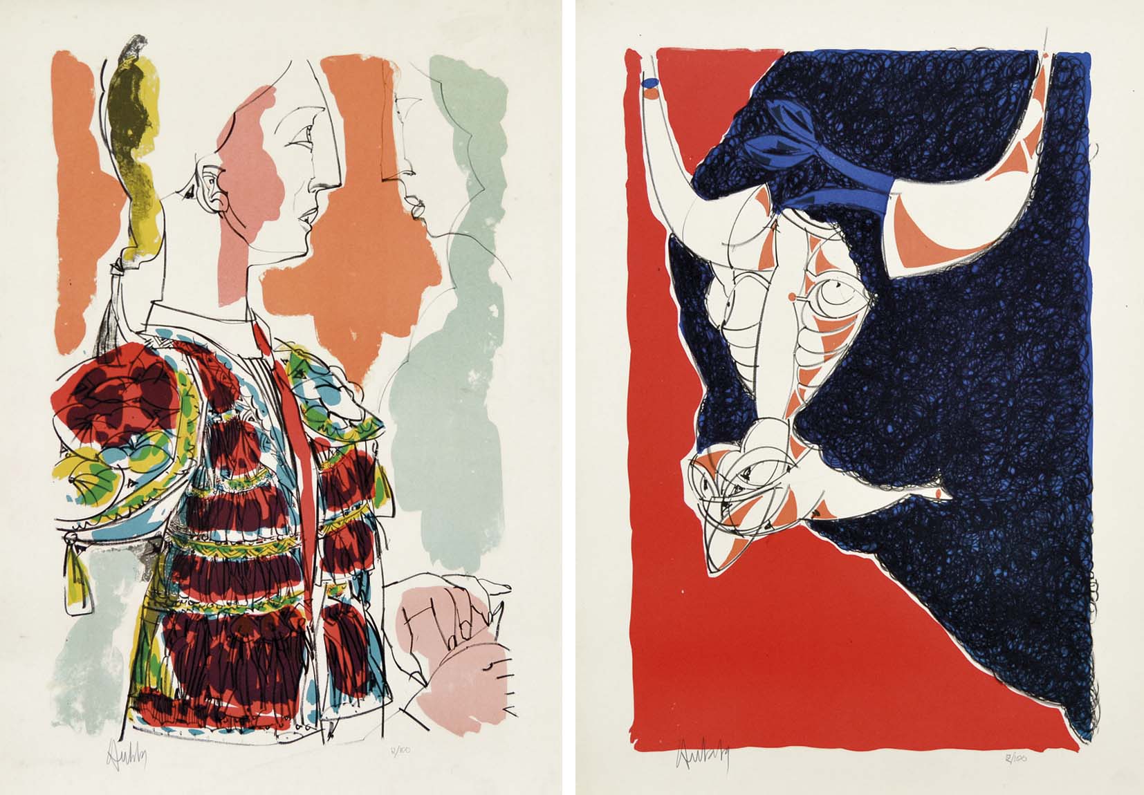 AULESTIA SALVADOR Barcellona 1915 - 1994 La fiesta de los toros cartella contenente 11 litografie es. 12/100 50x70 cad. firma in basso a destra tiratura in basso a sinistra