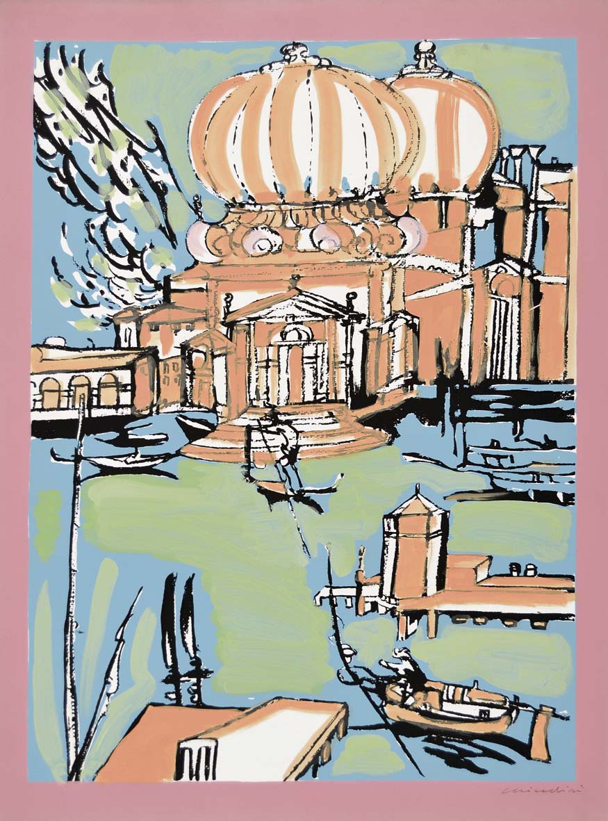 BRINDISI REMO Roma 1918 - Lido di Spina 1996 Venezia litografia retouchè 70x50 firma in basso a destra Timbro a secco Galleria d'Arte Pace Milano in basso a sinistra