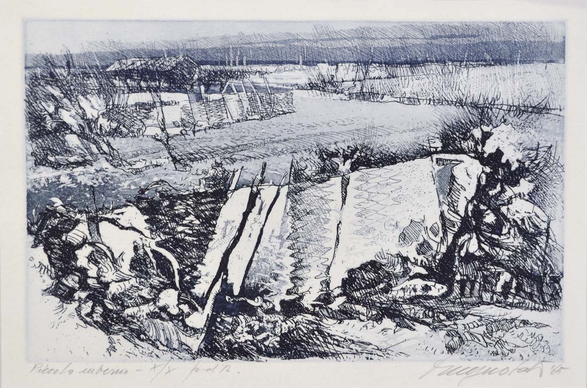 MAGNOLATO CESCO Noventa di Piave 1926 Piccolo inverno 1965 acquaforte es. X/X p.d.a. 20,5x32 (lastra)35x55 (foglio) firma e data in basso a destra titolo e tiratura in basso a sinistra