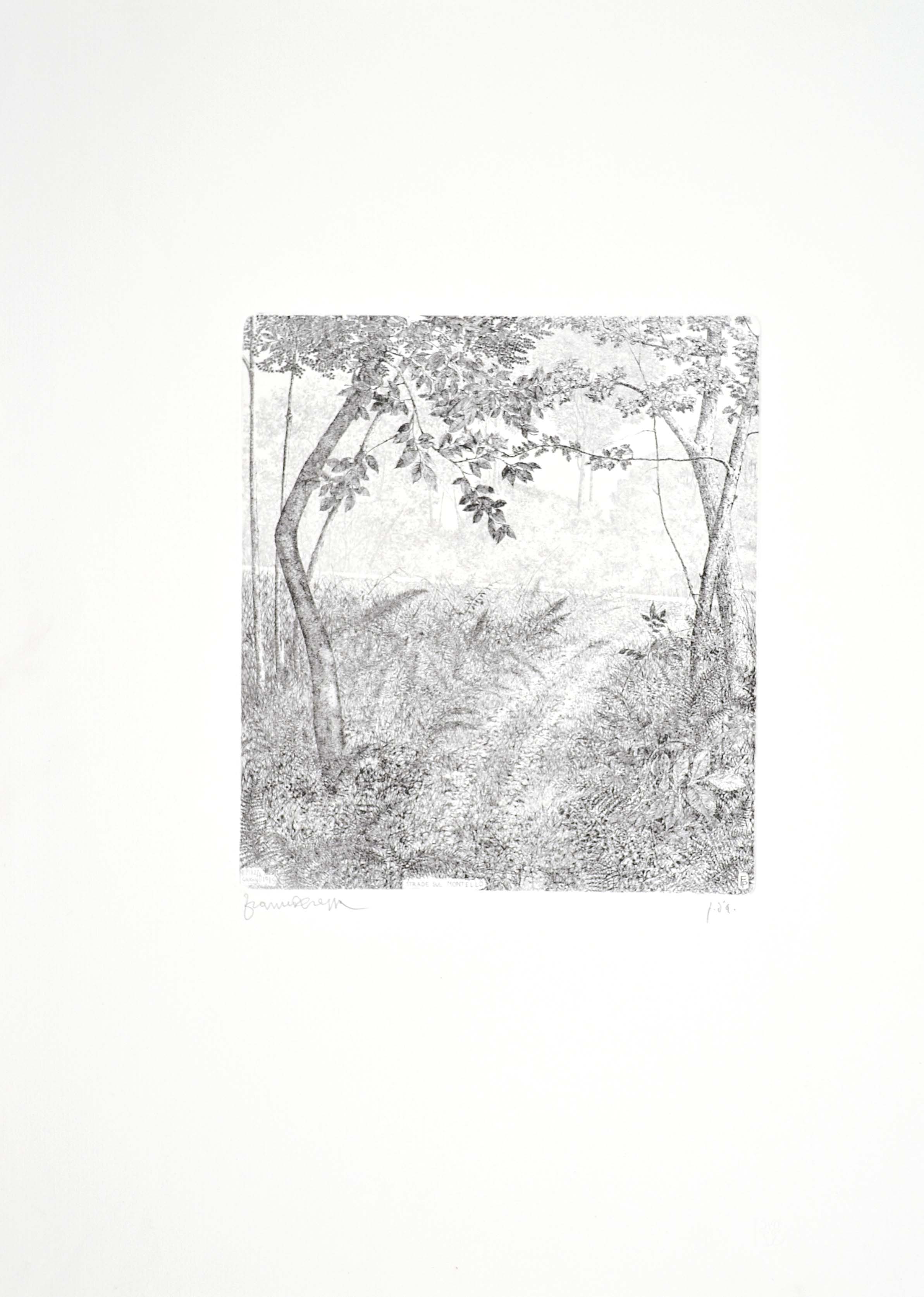 PIAZZA FRANCESCO Venezia 1931 Strade sul Montello 1985 acquaforte es. p.d.a. 30x27(lastra) 70x50(foglio) firma data e tiratura in basso La carta presenta un difetto sul bordo sinistro