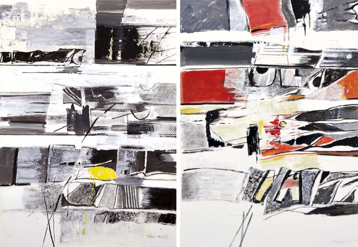AZZOLINI MAURIZIO Bondeno (Fe) 1937 senza titolo lotto di 5 olii e tecnica mista su cartoncino 50x70 cad. tutti firmati in basso a destra