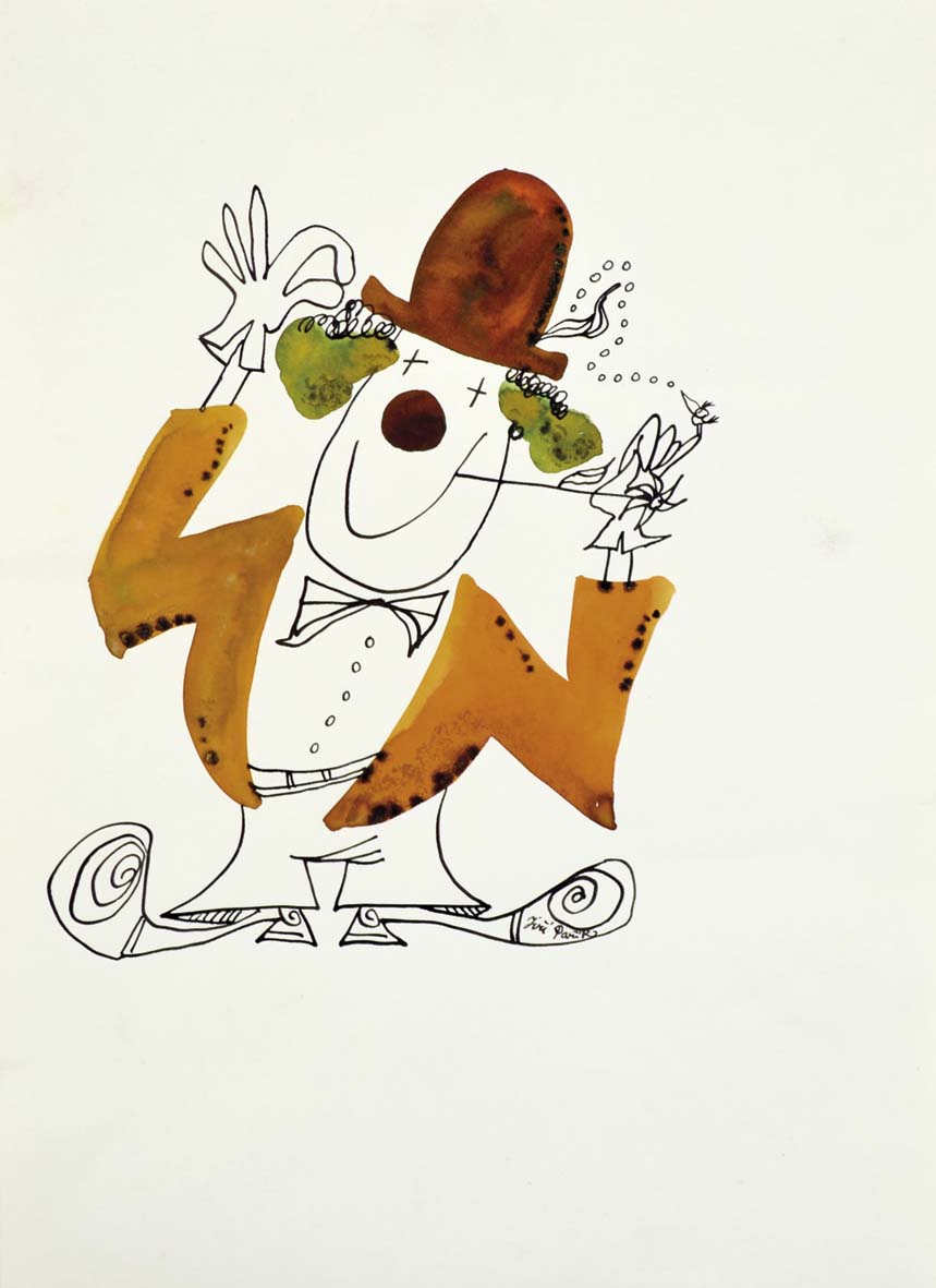 ANONIMO Pagliaccio tecnica mista su carta 45x33 firma non decifrabile in...