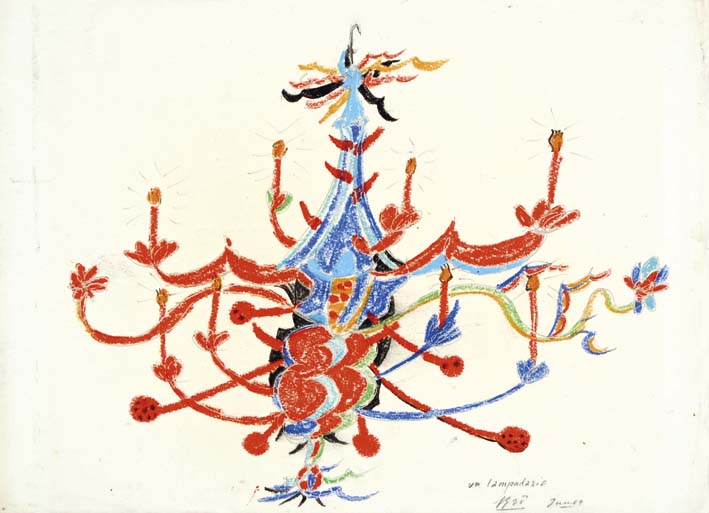 ERRO' GUDMUNDUR Olafsvik (Islanda) 1932 Un lampadario 1958 tecnica mista su carta 32,5x23 firma data e titolo in basso a destra
