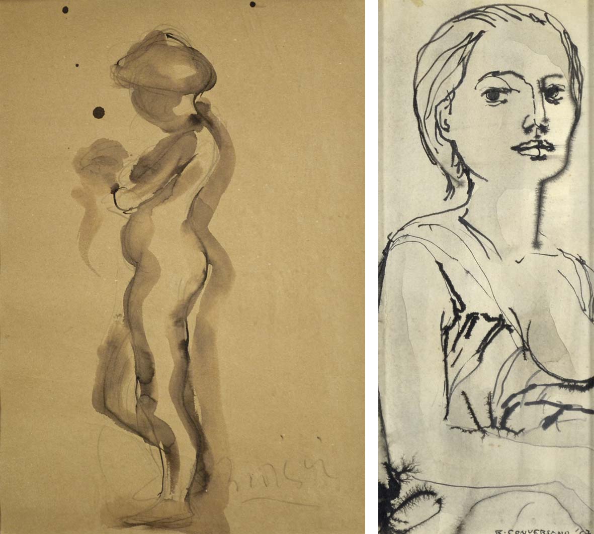 BROGGINI L. - CONVERSANO R. Figure lotto di 2 tecniche miste su carta 33x23 -...
