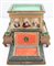 Sopra il coperchio vi è un vano che cela contenitore a lacca arancio con decori in oro sui due lati. e con un medaglione verde in oro con monogramma.