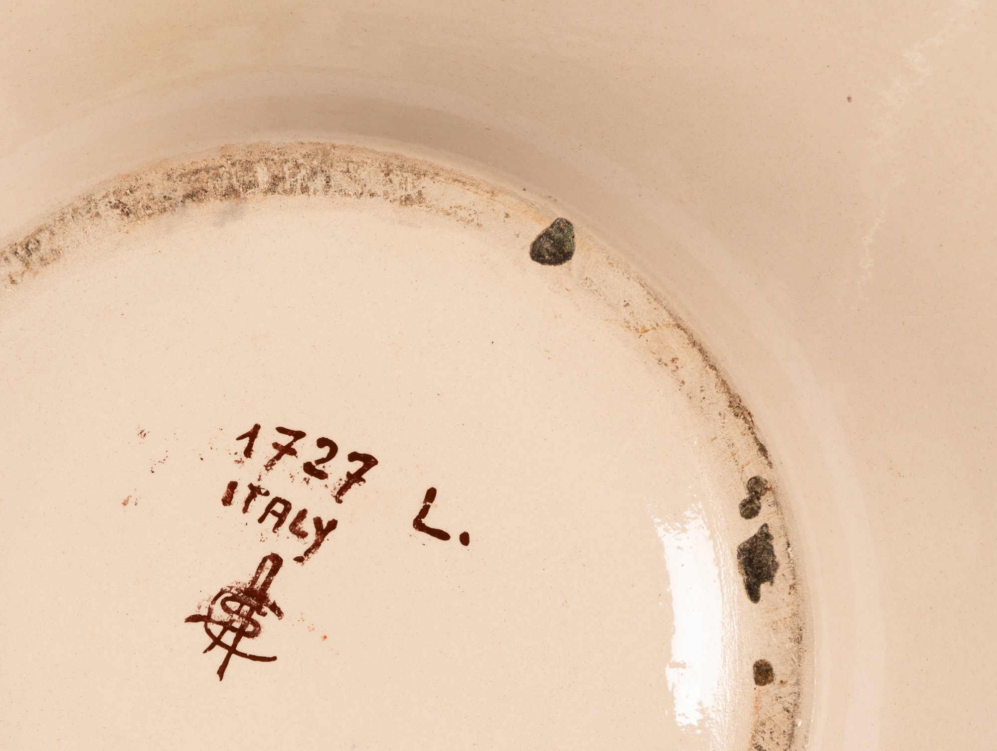 Lot 357 | Grande piatto in maiolica con larga tesa decorata con motivi a raffaellesche di gusto neorinascimentale. Manifattura A. Ciulli, inizi del XX secolo.