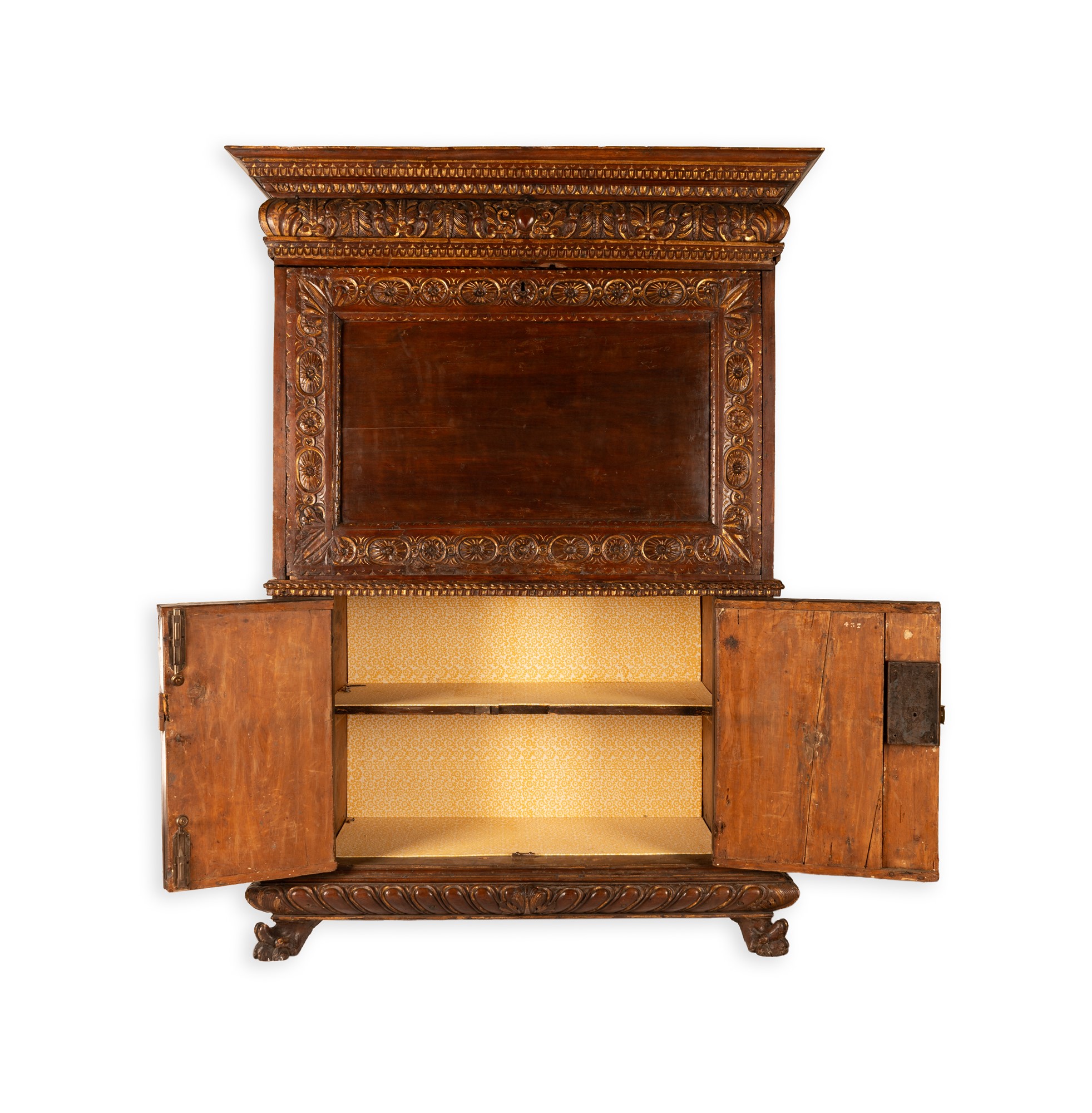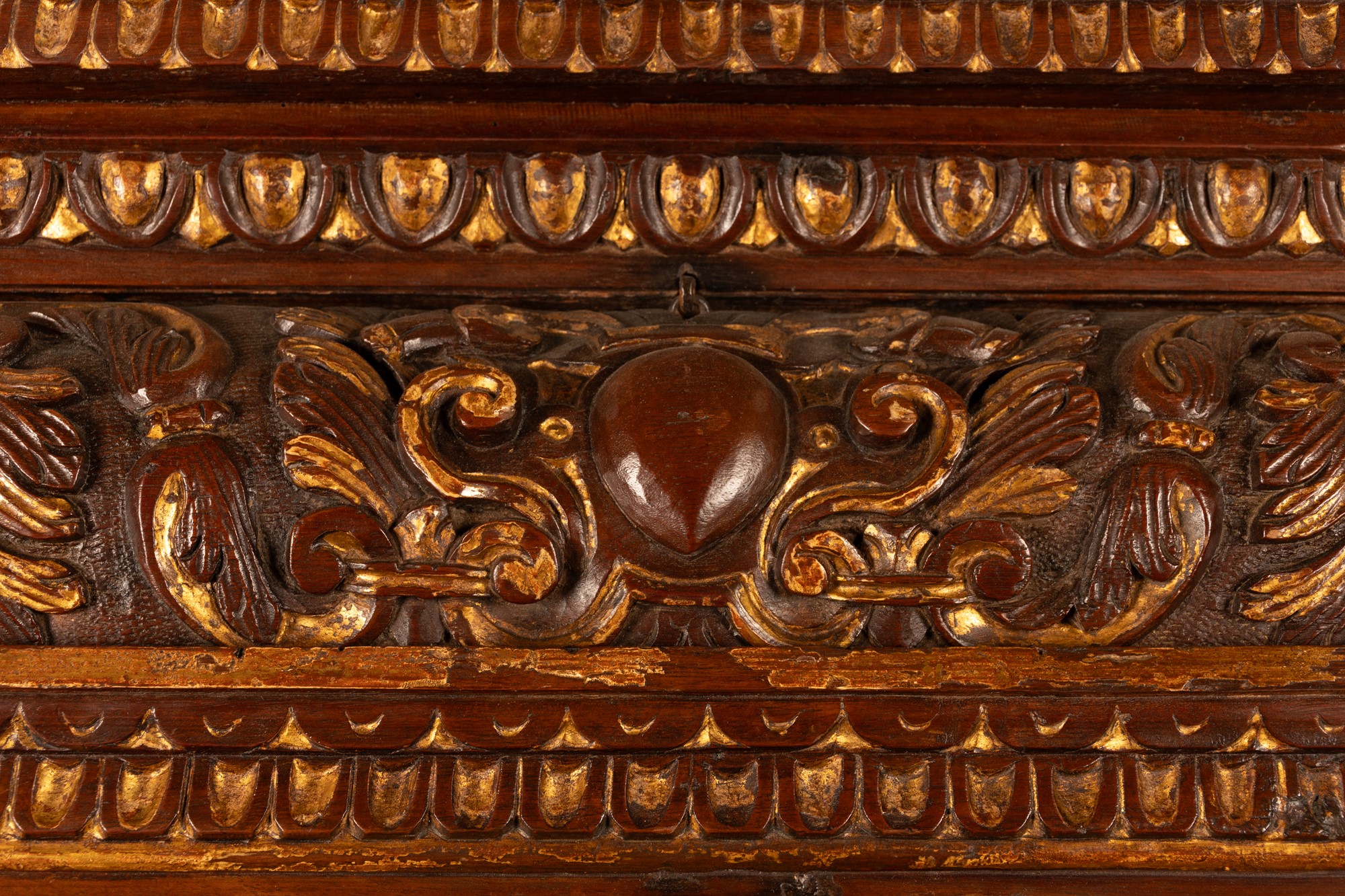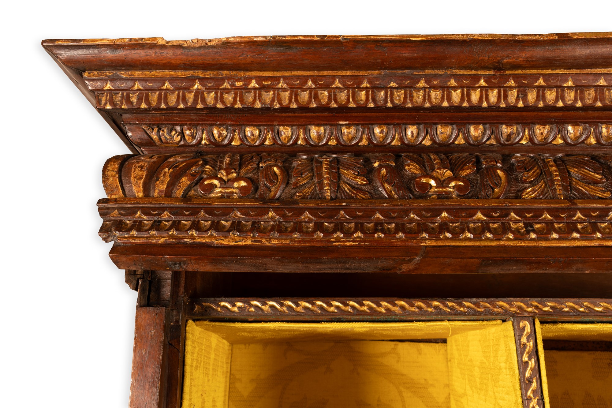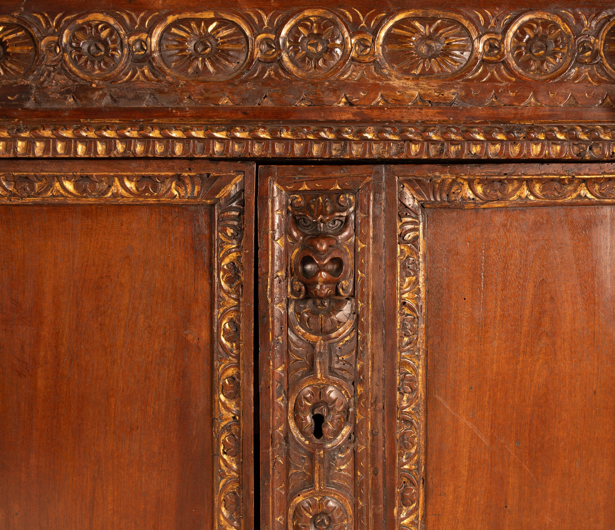 Grande mobile scrittoio in noce con ricco intaglio e lumeggiature in oro. Toscana, seconda metà del XVI secolo