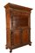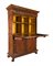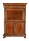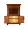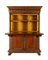 Corpo superiore con fronte liscio incorniciato da ricchi intagli a motivi floreali e vegetali, celante vano scrittoio con calatoia e scansie su due ordini per un totale di sei scomparti.