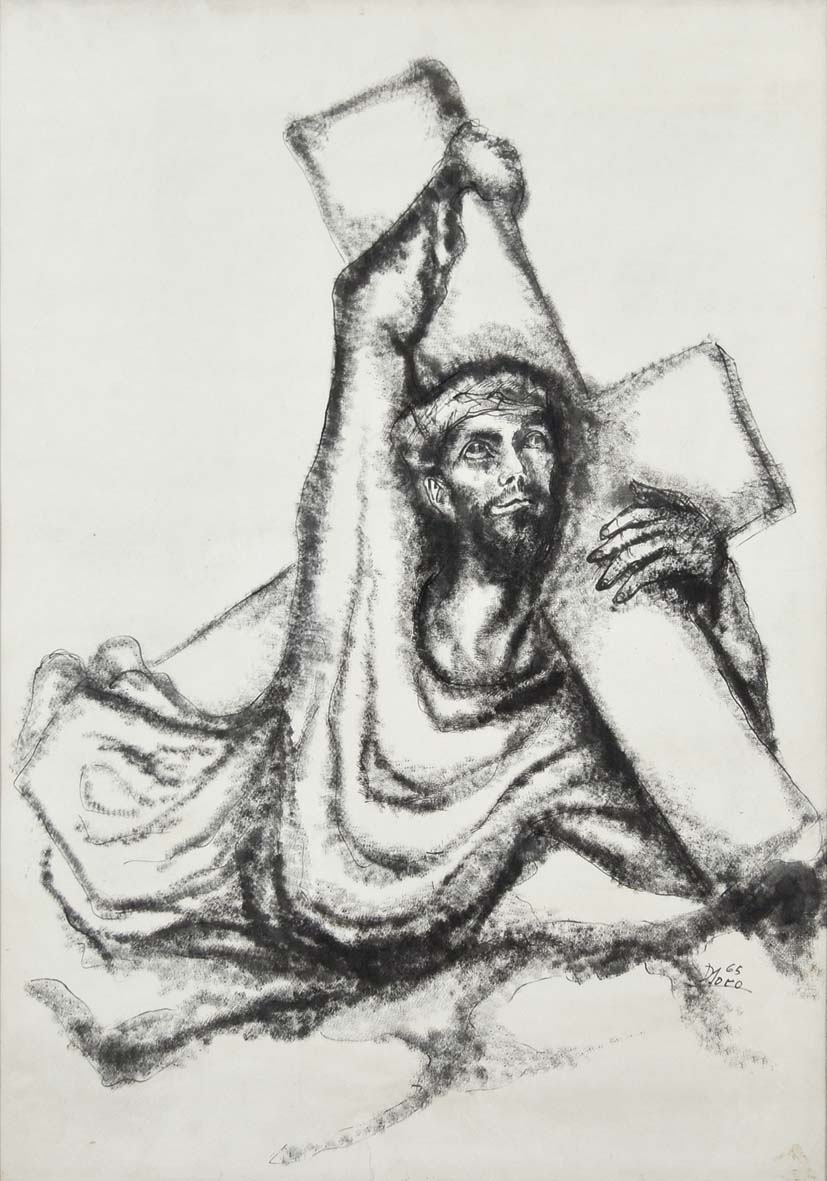 MORO Crocifissione 1965 tecnica mista su carta 70x50 firma e data in basso a destra