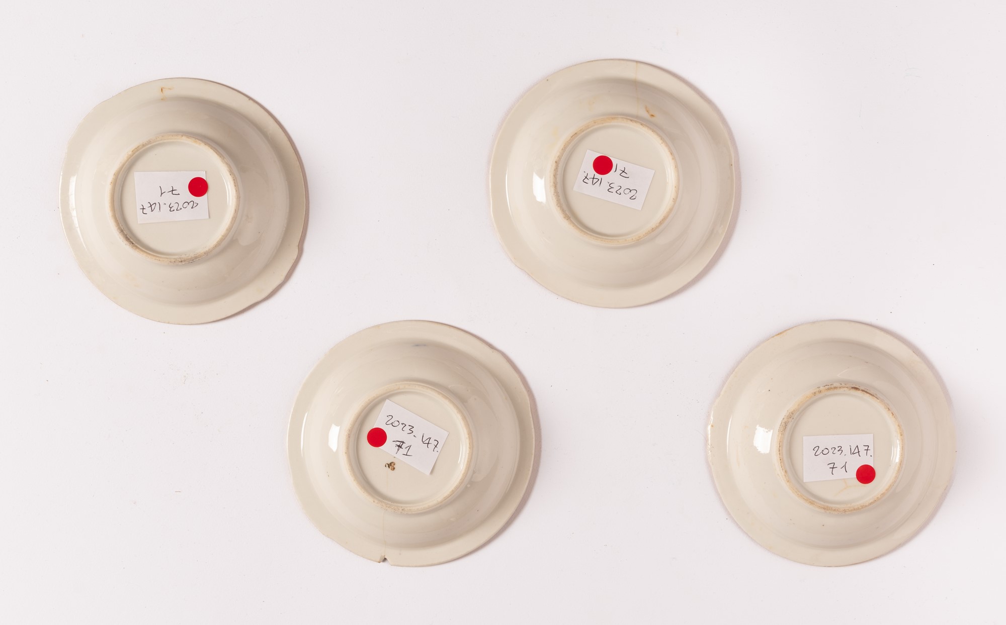 Lotto di quattro coppette in porcellana dipinta nella testa a fondo blu notte. Manifattura francese del XX secolo