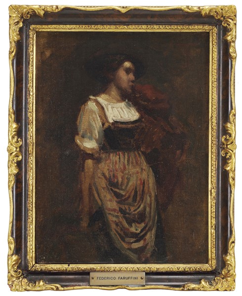 Federico Faruffini "Popolana" olio su tela (cm 23,5x18) monogrammato in alto a